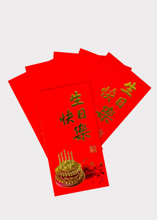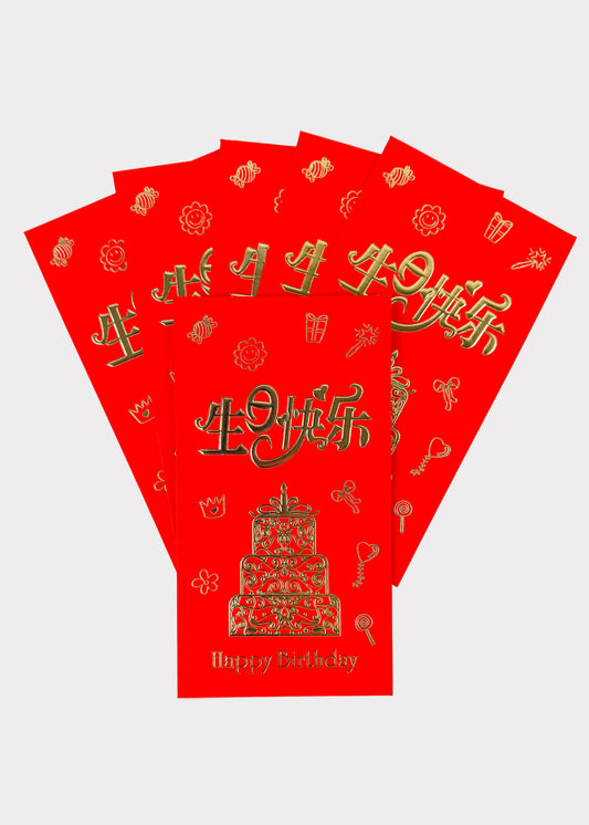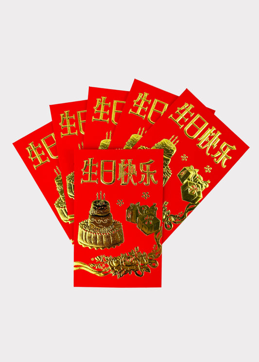 Happy Birthday Red Envelope – Gold Foil Cake Design – 生日快乐 Packet (6 Count)