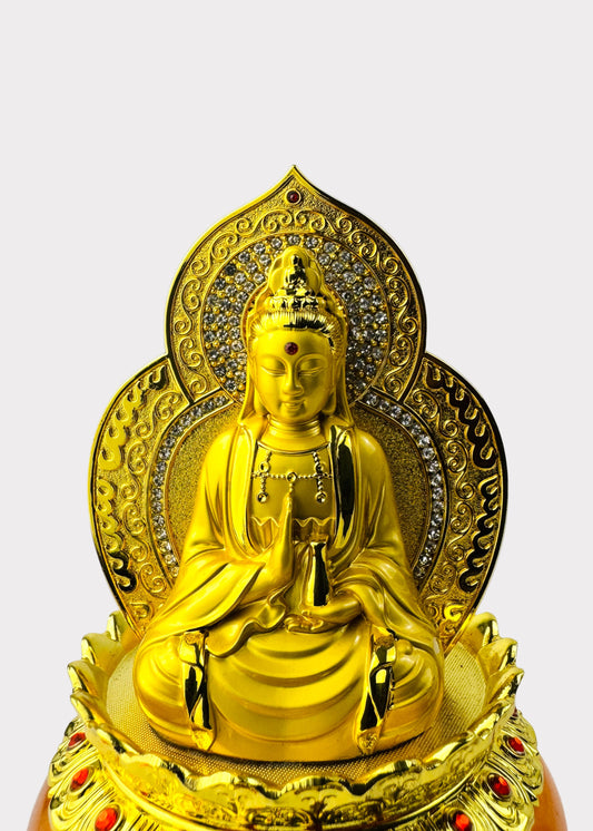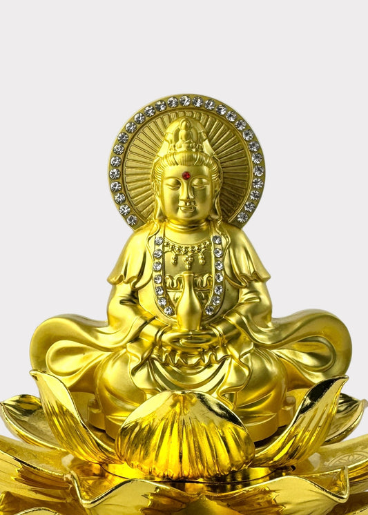 Guan Yin Lotus Base - Essential Oil Diffuser - Double Sided - Gold Tone
