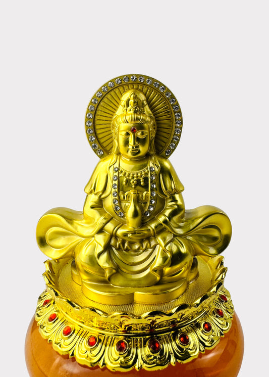 Guan Yin - Essential Oil Diffuser - Double Sided - Gold Tone with Amber Reservoir