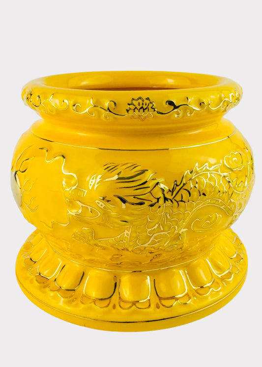 Two Dragons & Flaming Pearl – Incense Holder Pot – Ceramic