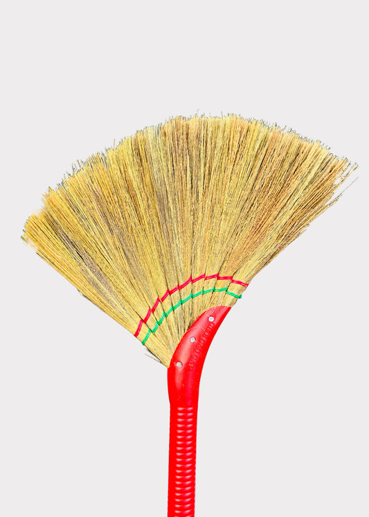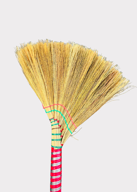 Vietnamese Asian Soft Straw Broom - Colorful Plastic Handle - Gentle Cleaning (1 Random Color)