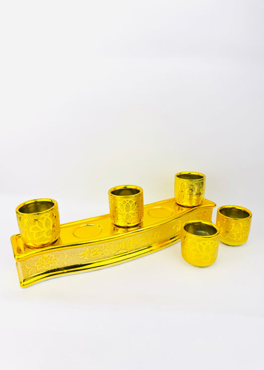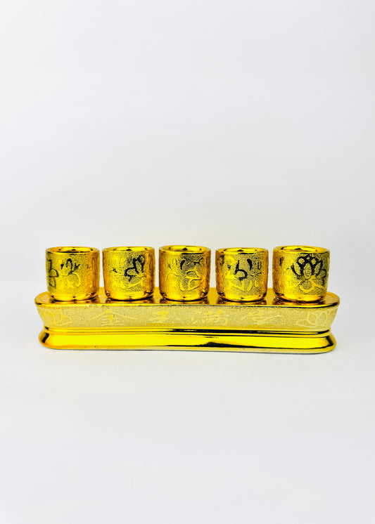Gold Lotus Altar Offering Cups Set - 5 Cups - Curved Rectangular Base