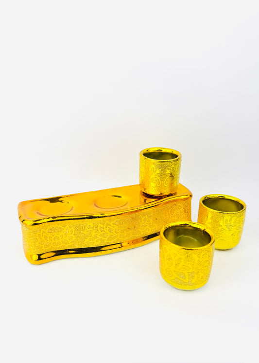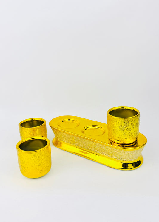 Lotus Altar Cups - Gold-Tone Tray with Textured Finish - Set of 3