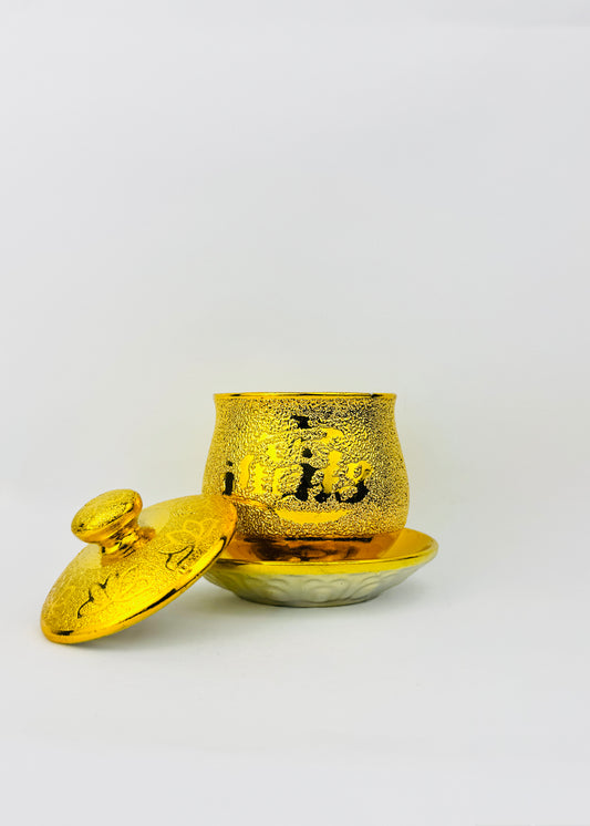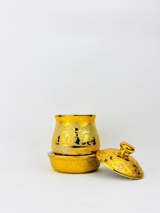 Lotus Offering Cups Set - Gold Rectangular Base - 3 Cups