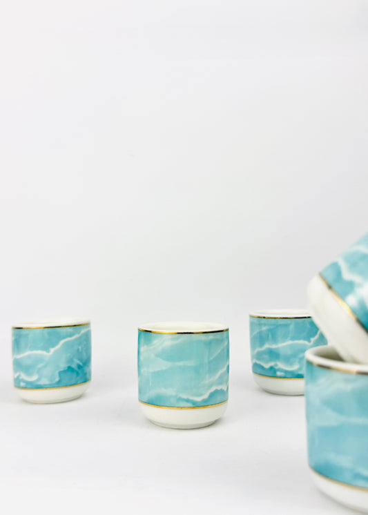 Blue Marble Altar Offering Cups Set - 5 Cups - Porcelain Tray - Gold Rim
