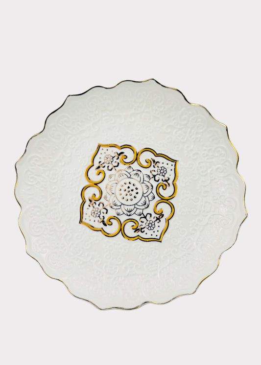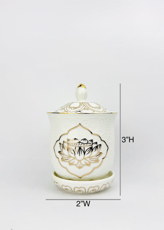 White & Gold Lotus Medallion – Incense Holder Pot – Ceramic