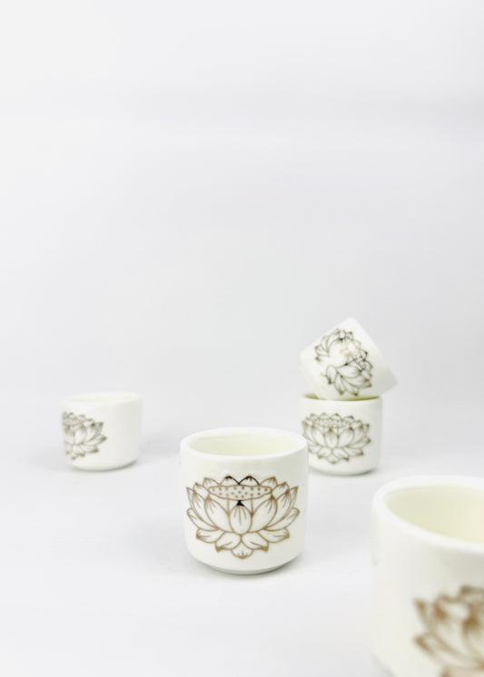 Mini Lotus Linework Offering Cup - Small - White/Gold