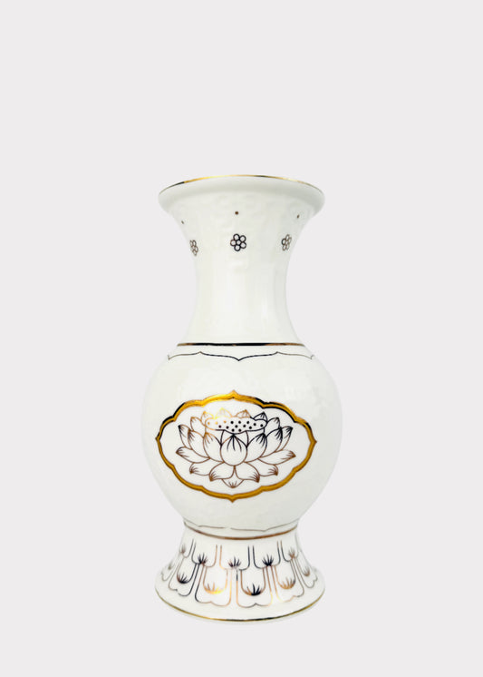 Lotus Outline Medallion - Altar Vase - White/Gold - Ceramic