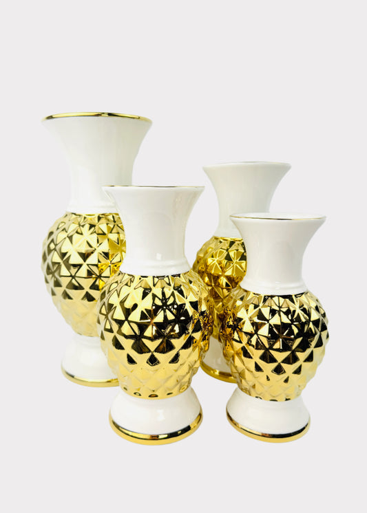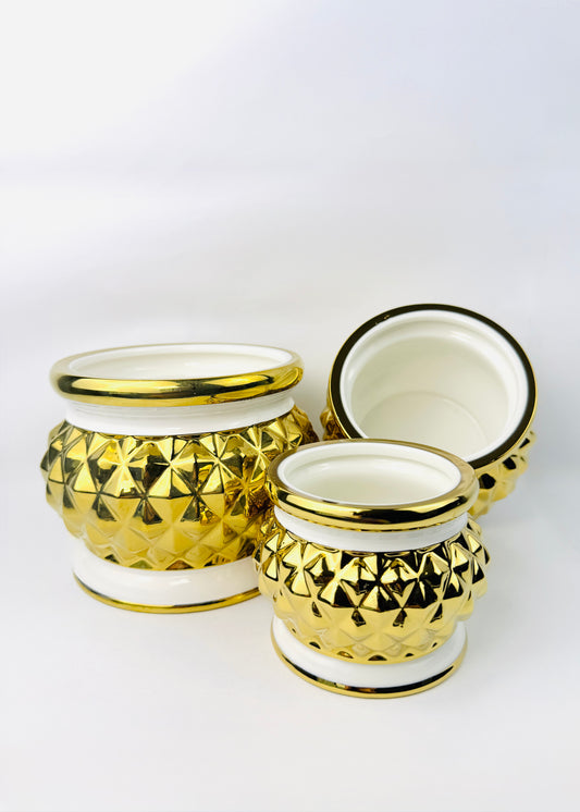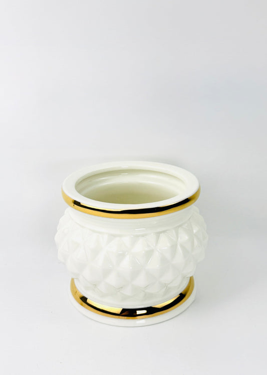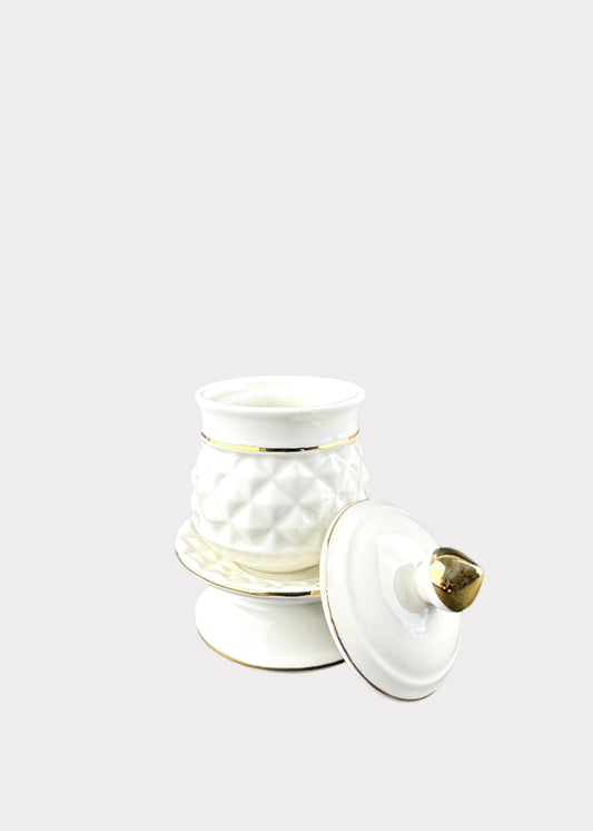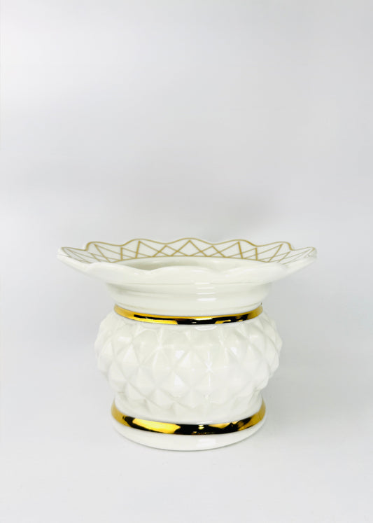 Geometric White – Incense Holder Pot with Gold Rim – Ceramic