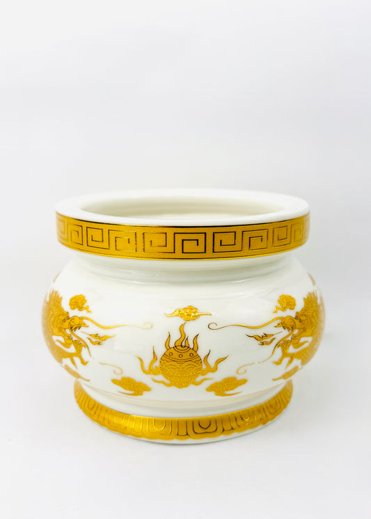 Imperial Two Dragons & Flaming Pearl – Incense Holder Pot – Ceramic