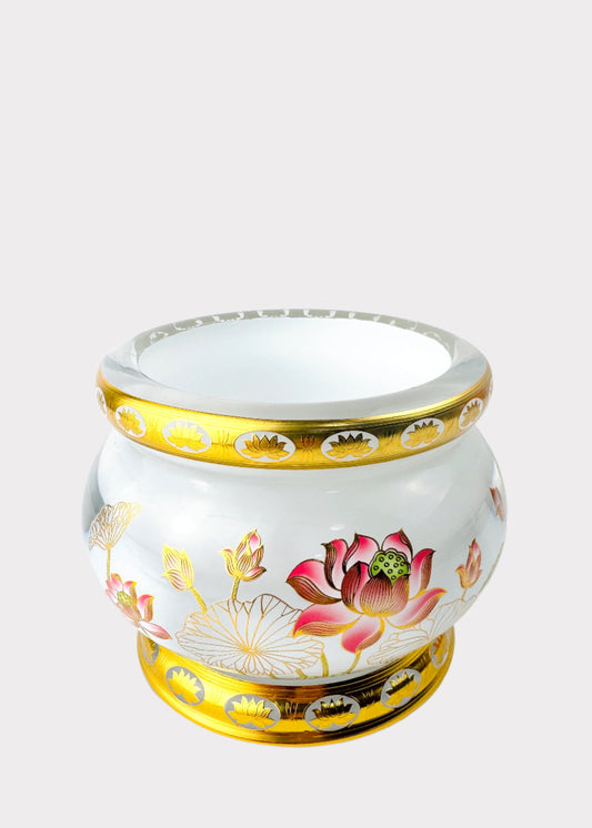 Crystal Lotus Scalloped Incense Holder - Gold Trim