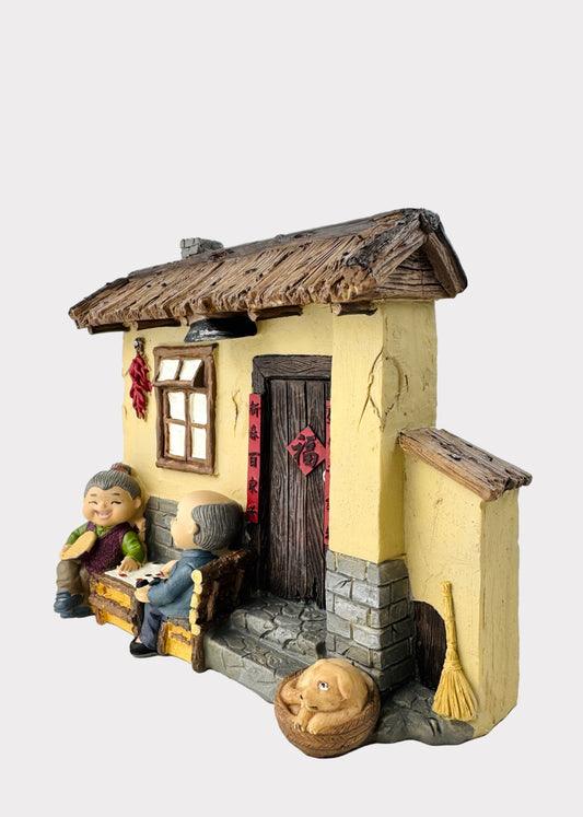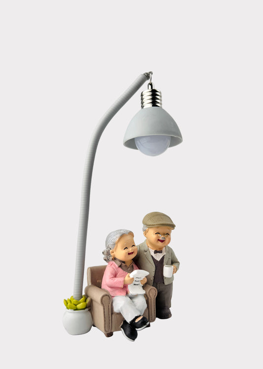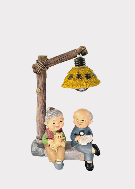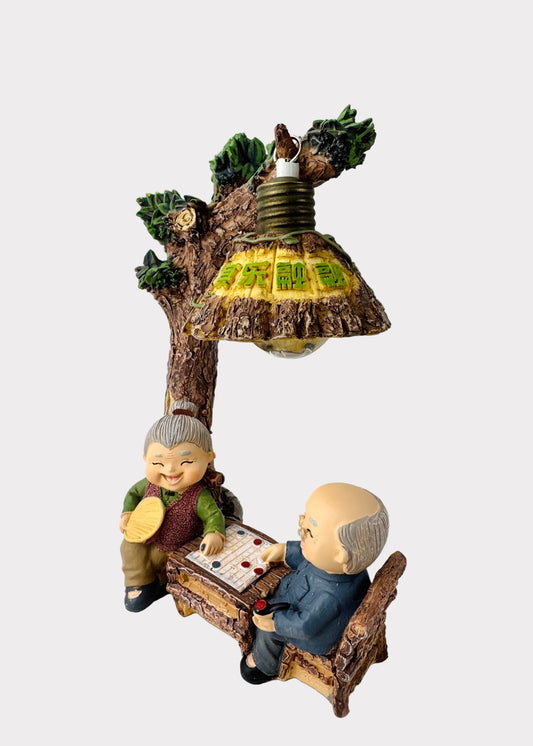 Grandparents Playing Chess Under Tree Lamp Figurine