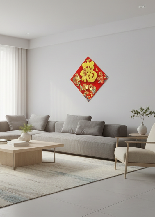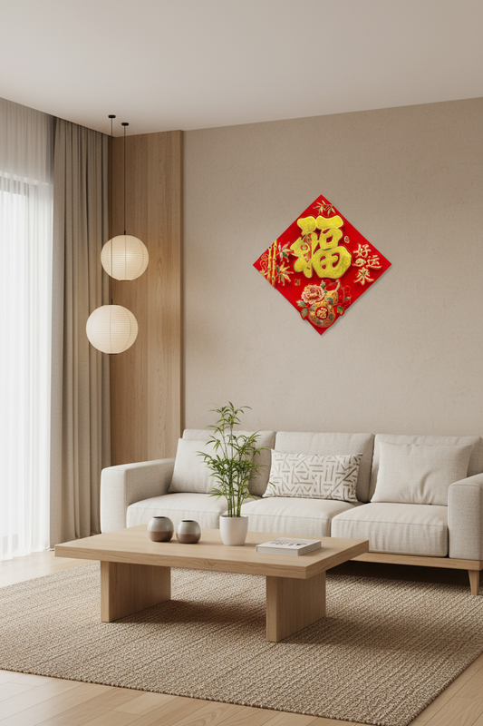 Felt Lunar New Year Hanging Decor with Auspicious Sayings - Red Tassel Door Ornament