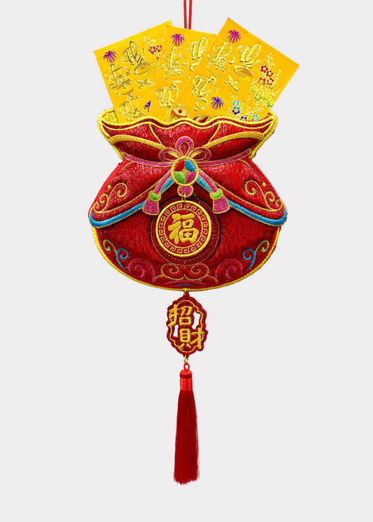 Embroidered Lunar New Year Fortune Pouch - Hanging Decorative Gift Holder