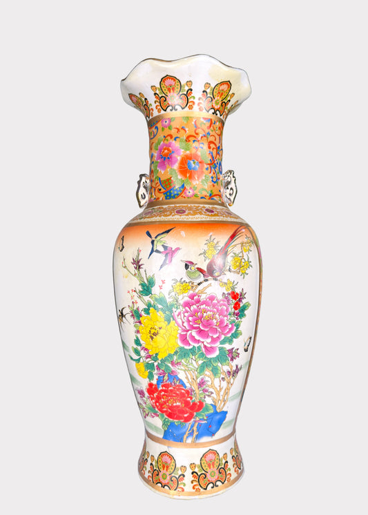 Porcelain Vase – Hand Painted Florals – Tall Ceramic Floor Décor