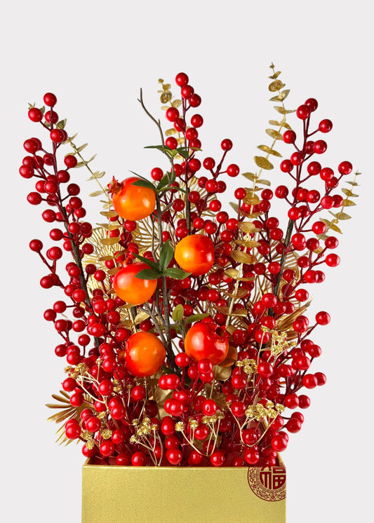 Lunar New Year Berry and Pomegranate Tabletop Decor – Gold Foliage Fortune Display