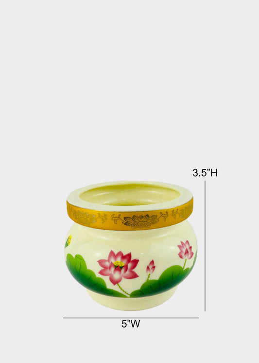 Lotus Garden – Incense Holder Pot with Yellow Floral Rim – Ceramic