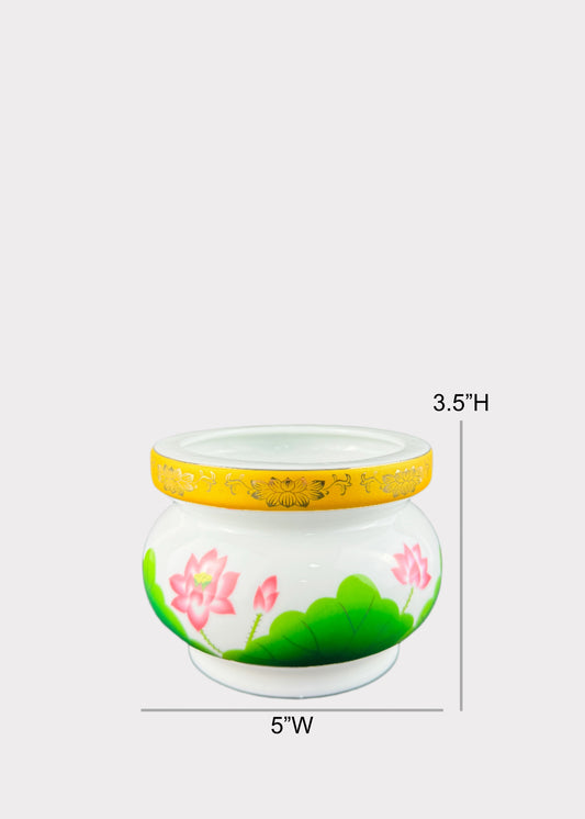 Lotus Pond – Incense Holder Pot with Yellow Rim – Ceramic