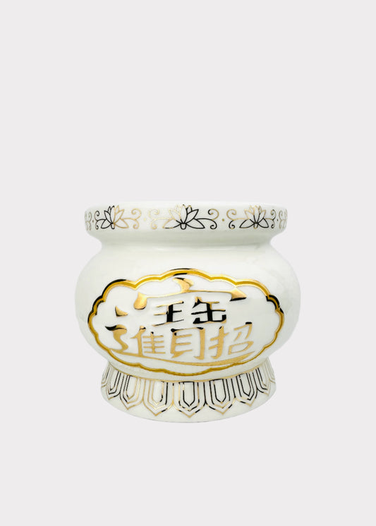 White Buddha Sutra – Incense Holder Pot with Gold Rim – Ceramic