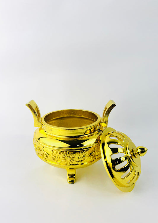 Yellow Blossom Relief – Incense Holder Pot with Gold Rim – Ceramic