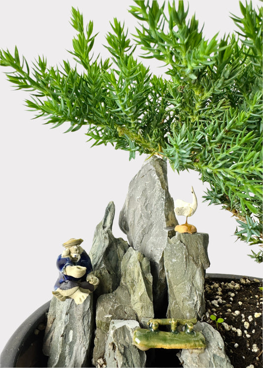 Juniper Bonsai with Pond (Assorted Ceramic Colors)