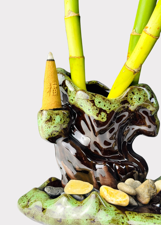 Resting Monk on Lotus Wave Backflow Incense Burner - Ceramic