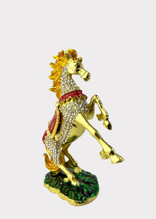 Golden Rearing Horse Trinket Box with Crystals - Feng Shui Decor