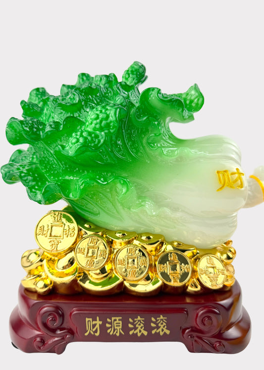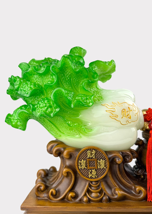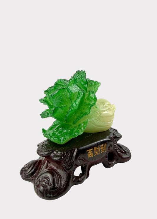 Mini Feng Shui Cabbage on Wooden Base – Wealth & Fortune Figurine