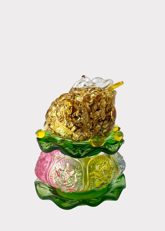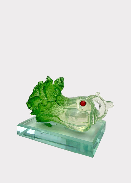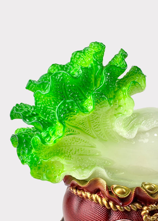 Glass Feng Shui Cabbage on Crystal Base – Wealth & Prosperity Symbol