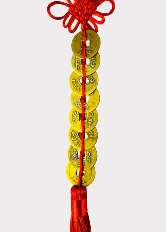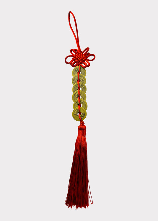 Six Emperor Coins - Feng Shui Hanging Tassel - Red Knot - Gold-Tone Alloy
