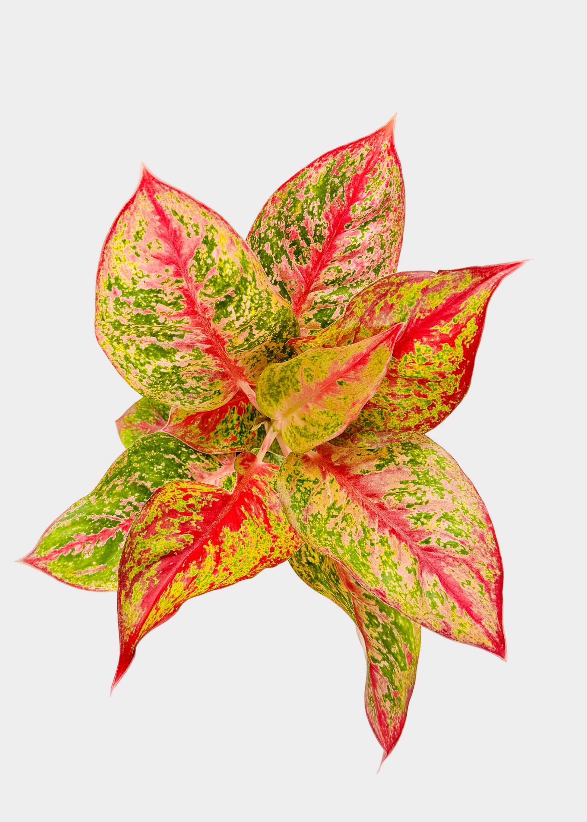 Aglaonema ‘Yan Huo’ is a vibrant, eye catching Chinese Evergreen known for its striking red and pink tones blended with soft green hues. Its bold, fiery coloration gives any room a warm, uplifting glow, making it a favorite for collectors and beginners alike. Compact, resilient, and decorative, Yan Huo brightens tabletops, shelves, and shaded corners with its lush tropical charm.