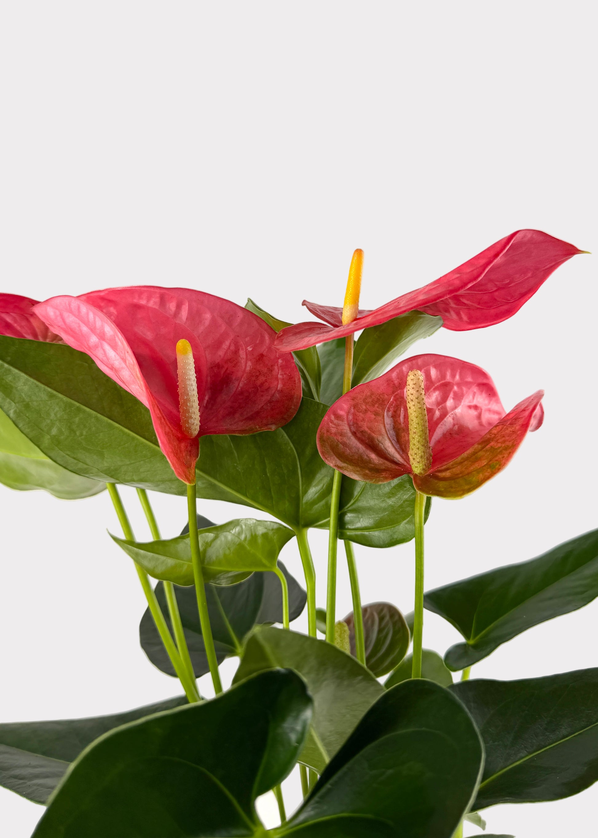 The Anthurium ‘Maine’ is a vibrant tropical houseplant known for its glossy heart-shaped leaves and striking pink spathes that resemble flowers. These long-lasting blooms emerge year-round, adding a pop of color and elegance to any space. Compact yet bold, Anthurium Maine is perfect for bright interiors, offices, and decorative tabletops.