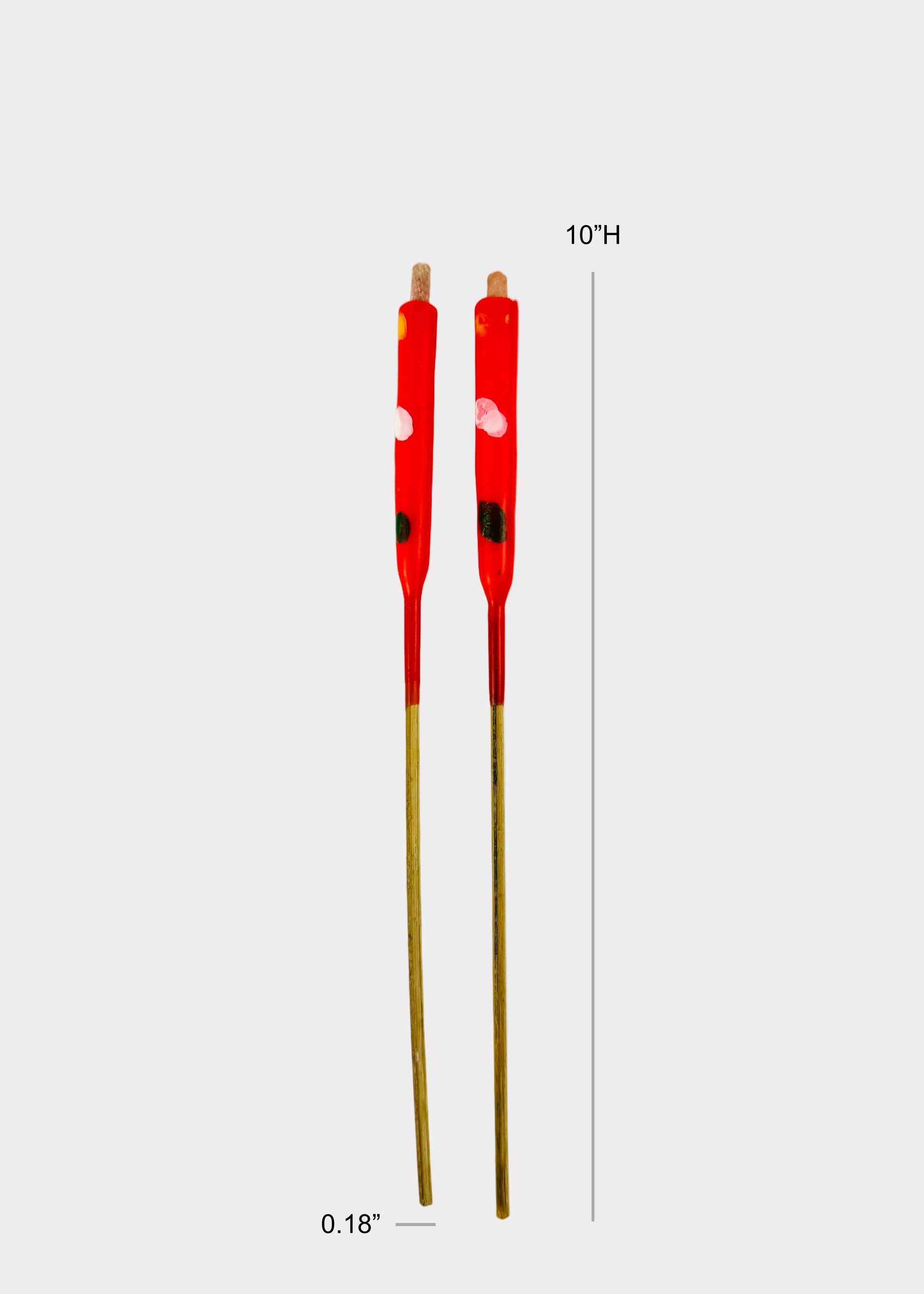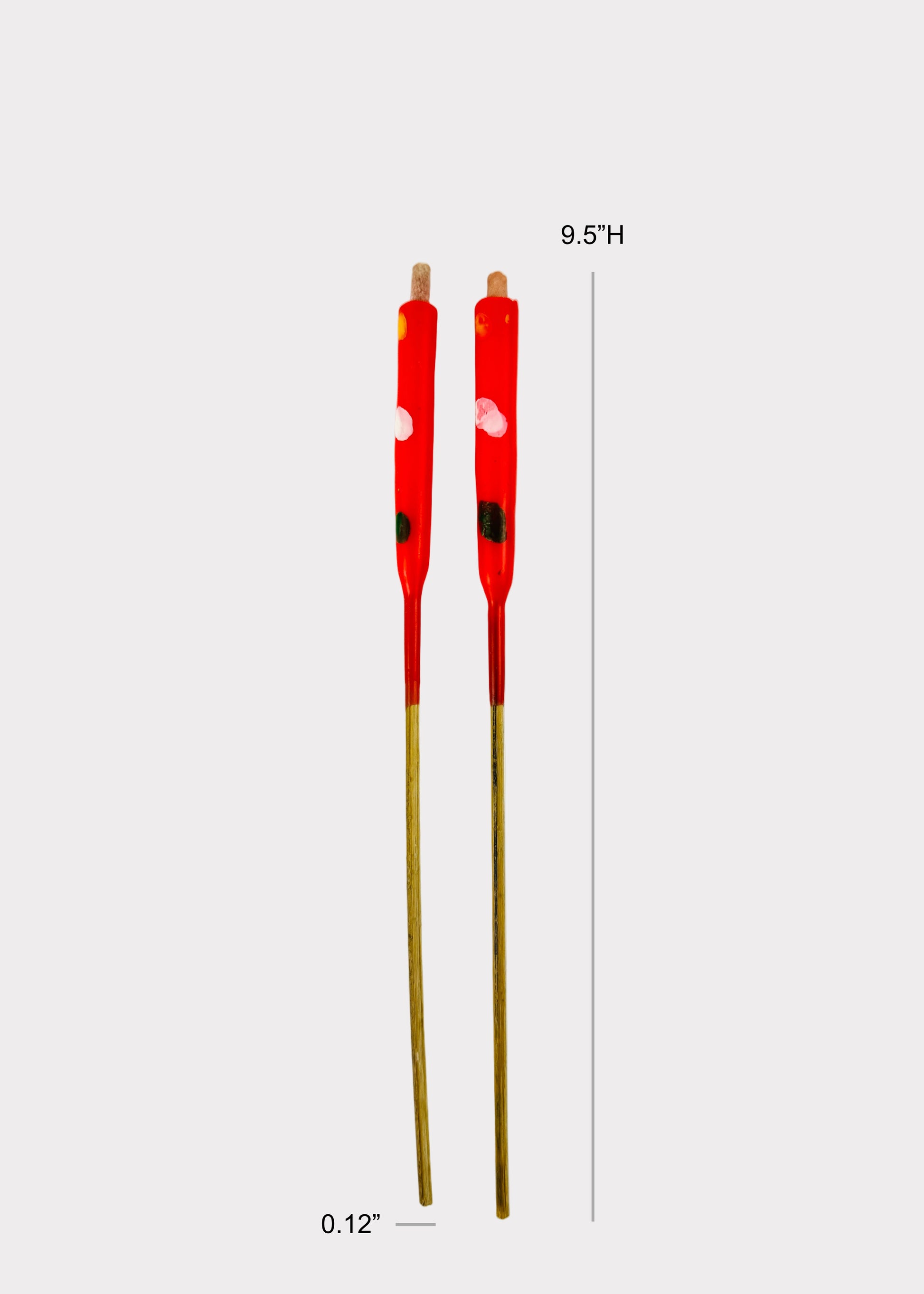 Bring tradition and symbolism into your space with this pack of 5 pairs of Asian bamboo stick candles, crafted with care for both ritual and decorative use. Each candle features a natural bamboo stick base and a vibrant red lacquer finish, accented with hand-painted floral details for a touch of cultural artistry. These candles are commonly used in temples, prayer ceremonies, and altar offerings to symbolize protection, prosperity, and blessings. With five complete pairs, this set offers excellent value for repeated rituals, festival celebrations, or as meaningful gifts. Beyond their ceremonial use, they also serve as striking decorative pieces for meditation corners, shrines, or unique home décor.
