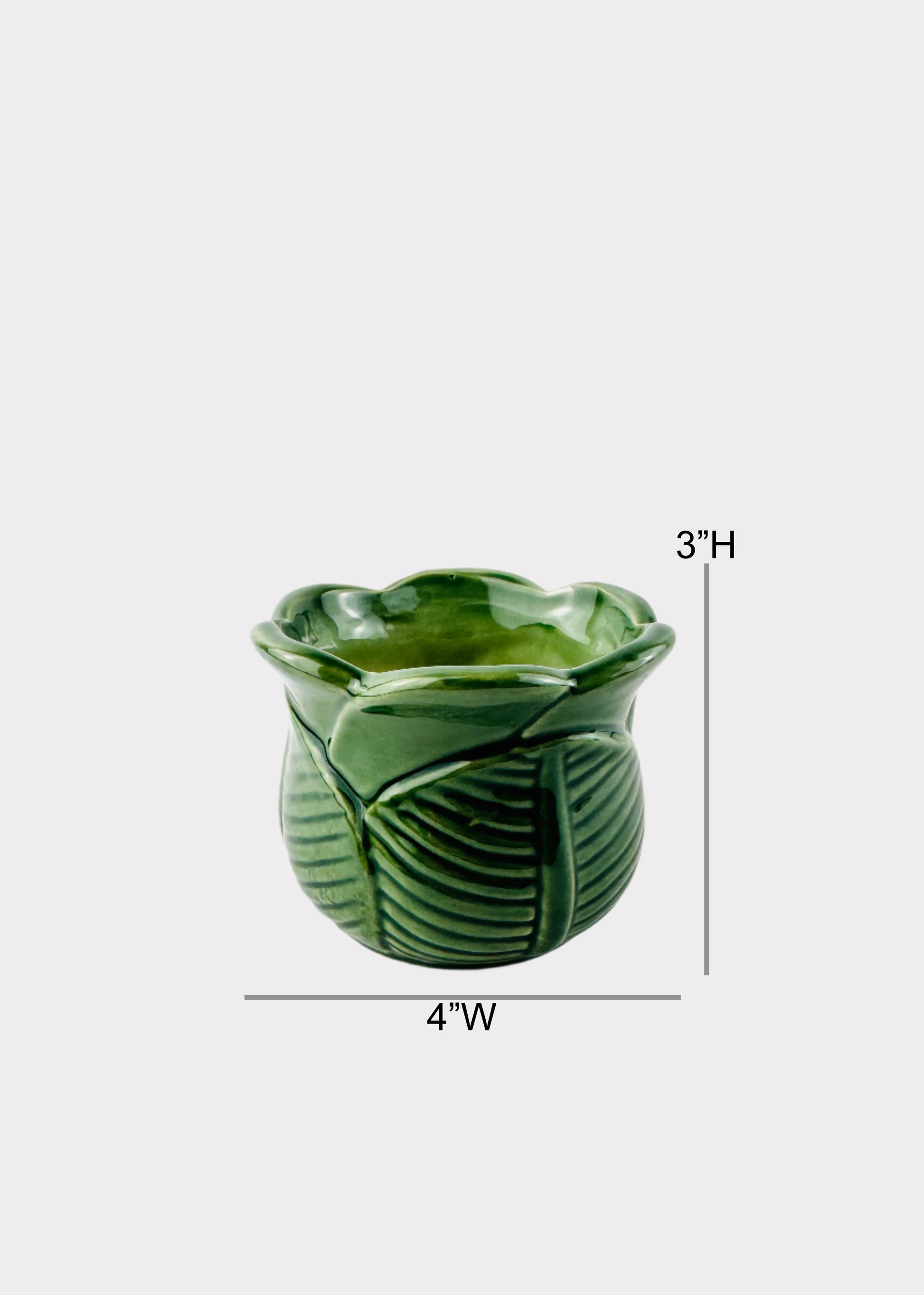 Bring the beauty of nature into your space with this stunning green ceramic planter, crafted in the shape of a delicate flower with lush foliage wrapping around it. The intricate detailing gives it a graceful, organic feel, making it a perfect home for lucky bamboo or other small plants. With its elegant design and natural charm, this planter adds a serene and refreshing touch to any altar, home, or office space.