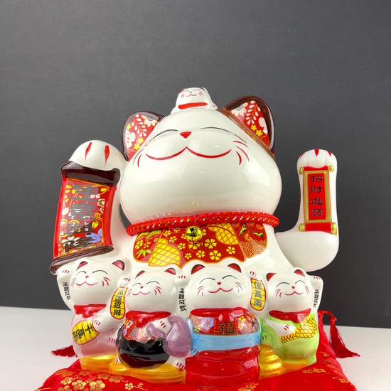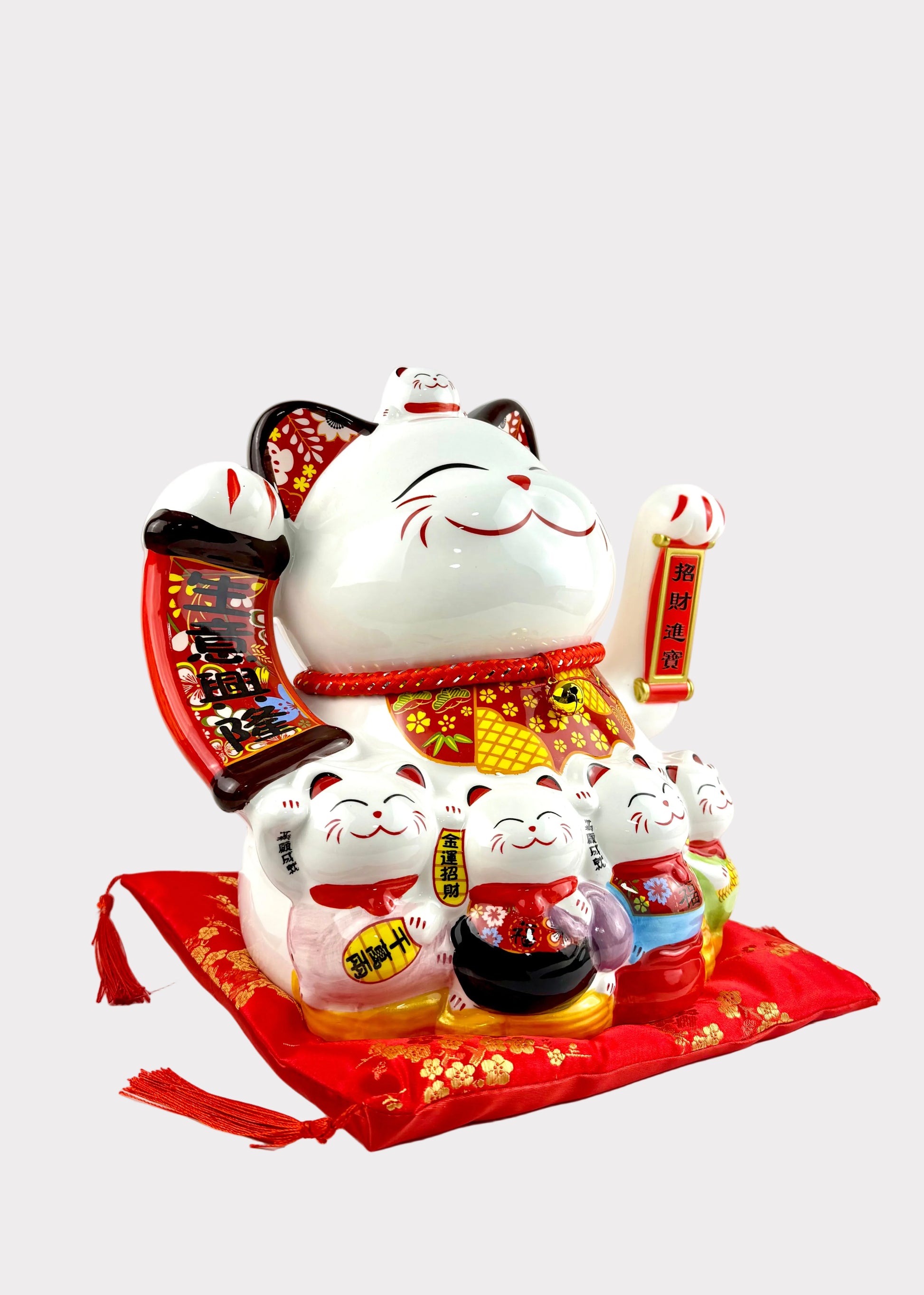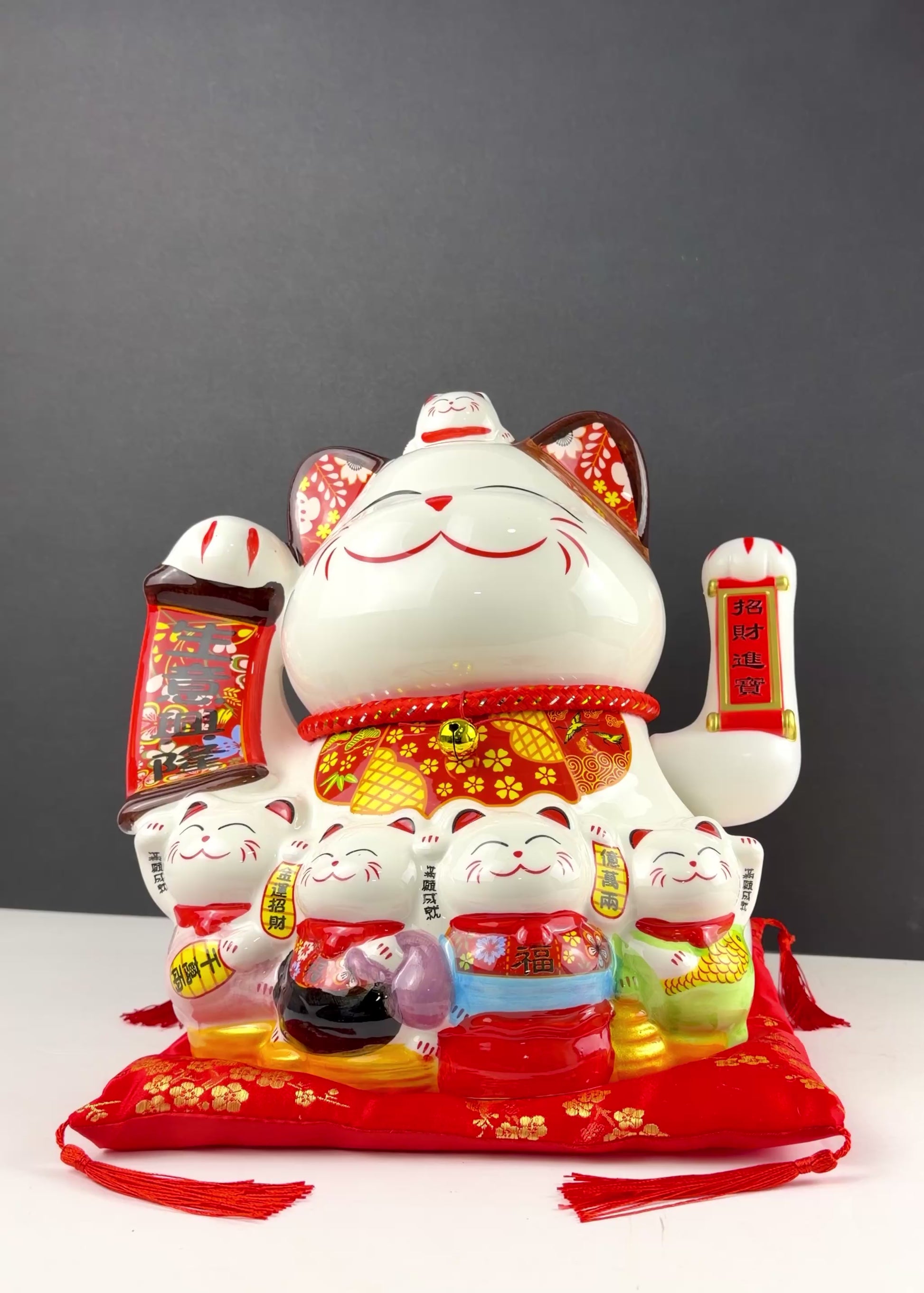 This ceramic lucky money cat with mini cats is a joyful and meaningful symbol of prosperity, abundance, and family harmony. Featuring a large central lucky cat surrounded by multiple mini cats, this piece represents multiplied blessings, growing wealth, and shared good fortune.