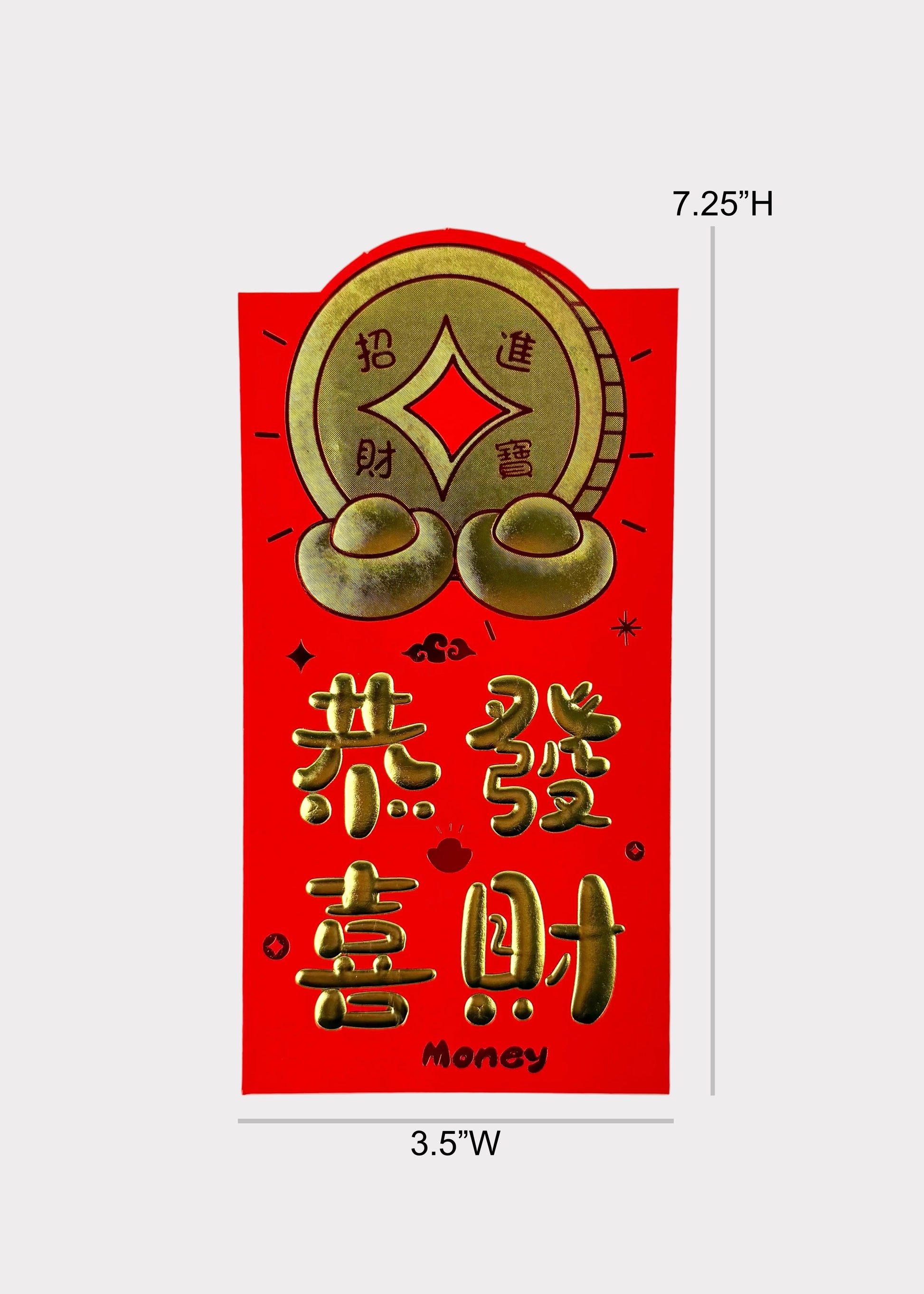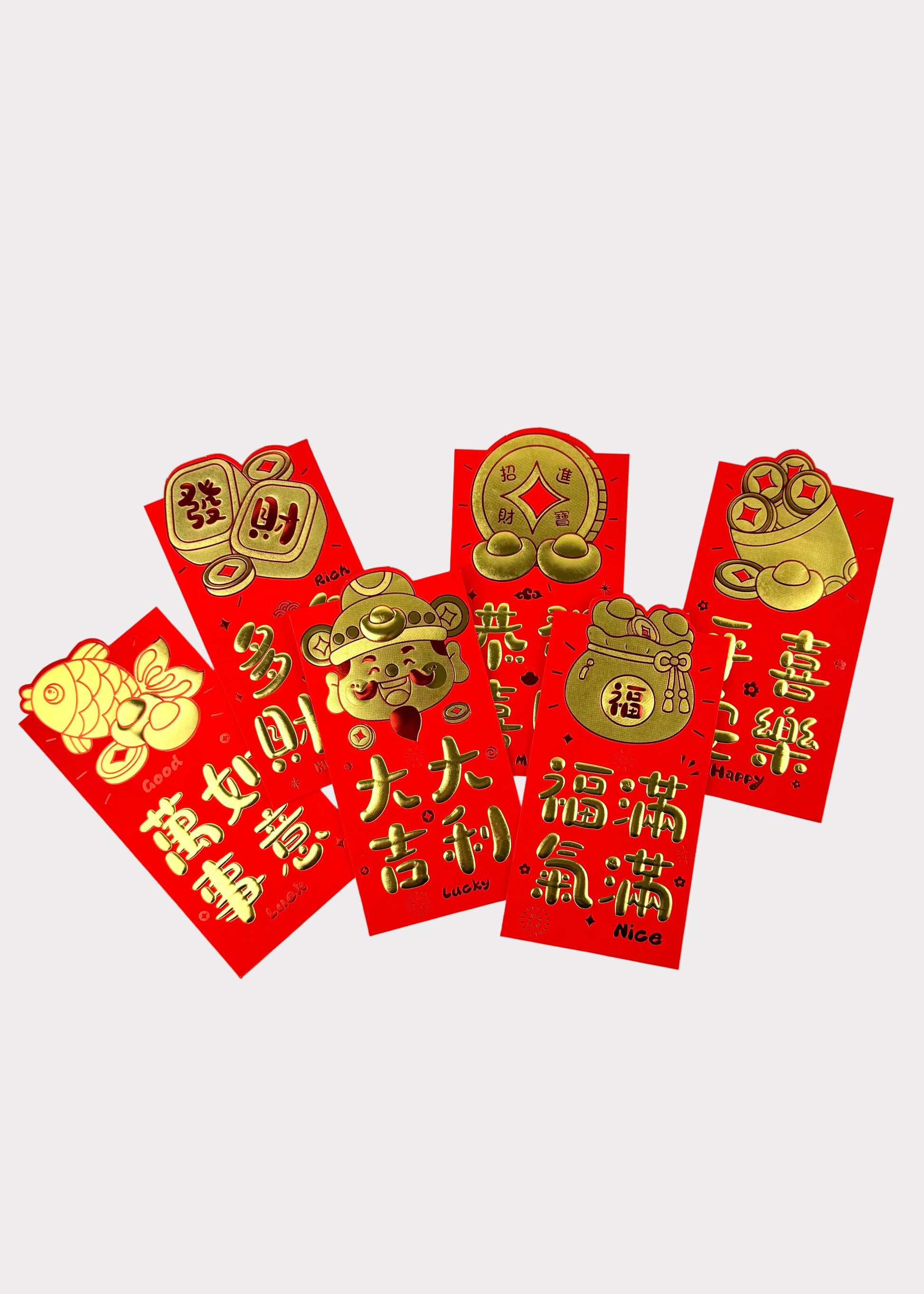 Every pack includes 6 different designs, each showcasing raised, embossed gold elements for a tactile and premium feel. The folded construction gives these envelopes personality and dimension, making them especially fun for gifting to kids, family, and anyone who enjoys a lighthearted twist on traditional lai see.