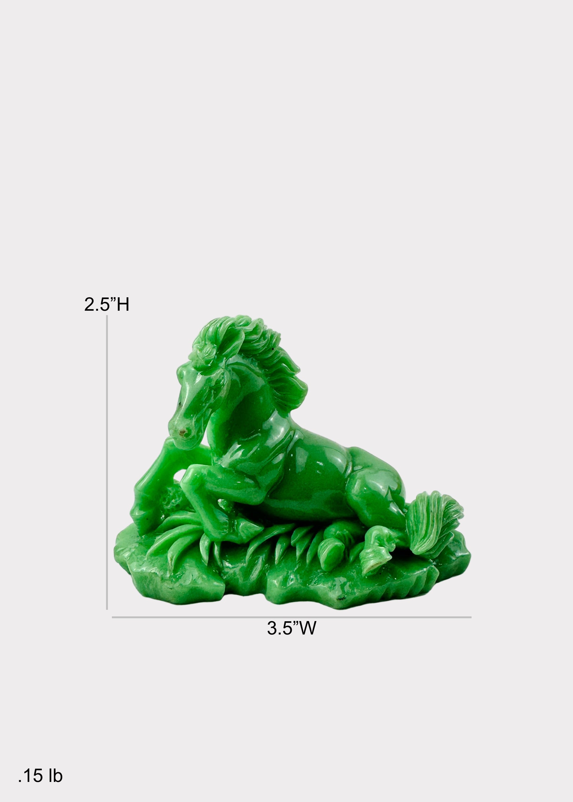 This set of eight green horse figurines represents vitality, progress, and triumph. Each horse captures dynamic movement, from galloping poses to powerful stances, making the collection ideal for altars, feng shui displays, or as symbolic décor to inspire momentum and determination. Crafted with detailed molding and a smooth jade-like finish, these figurines bring a sense of prosperity and energy into any space.