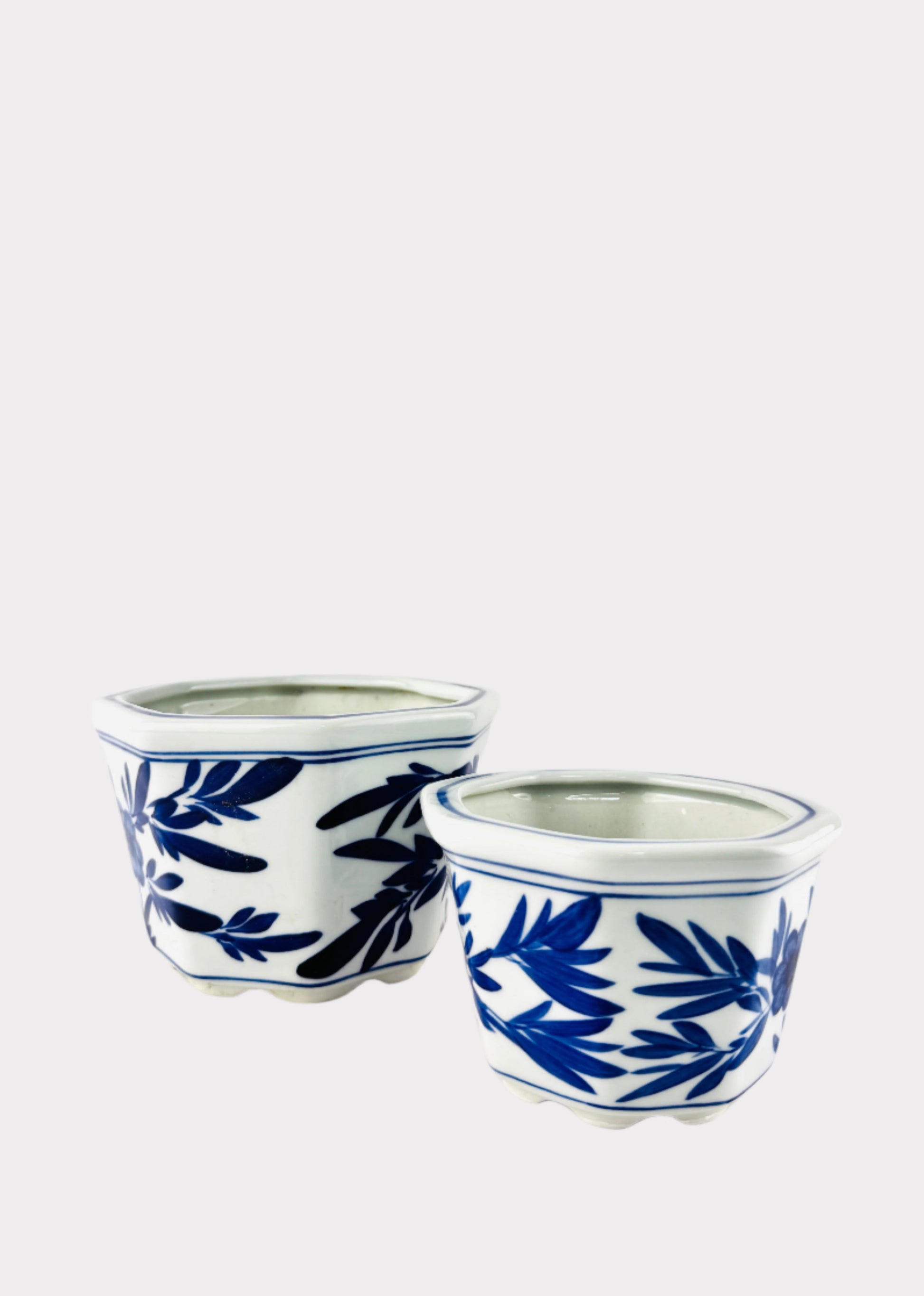 Classic Blue & White Hexagon Planter – Bamboo Blossom Design