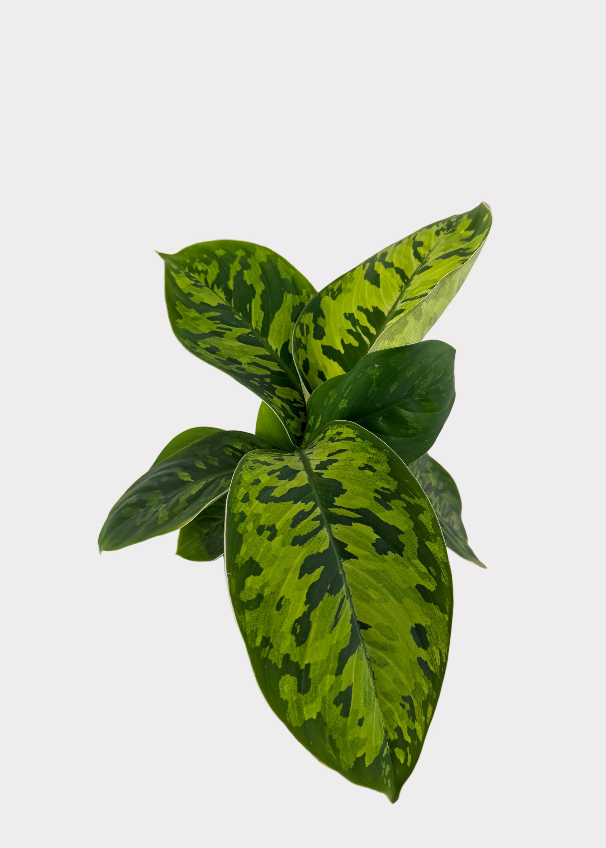 Homalomena ‘Camouflage’ is an exotic tropical plant known for its stunning foliage patterned in shades of green, chartreuse, and olive that resemble natural camouflage. Its heart-shaped leaves and compact form make it a beautiful, low-maintenance addition to any indoor jungle. Native to Southeast Asia, this plant thrives in warm, humid environments and brings a calming, lush aesthetic to homes and offices alike.