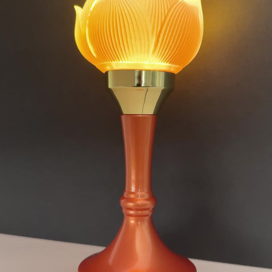 Pair of LED lotus lamps with golden-yellow glass petals