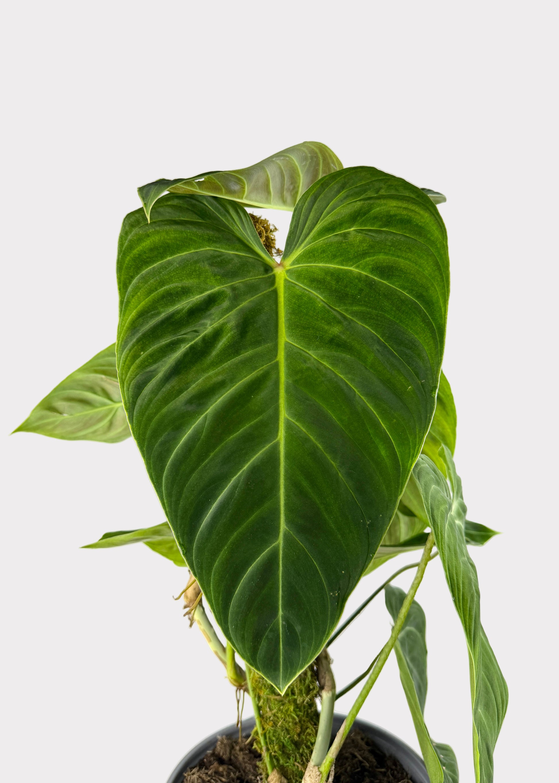 Philodendron Splendid is a breathtaking hybrid between Philodendron verrucosum and Philodendron melanochrysum, celebrated for its velvety, heart-shaped leaves with striking golden-green veining. The deep emerald coloration and dramatic texture make it one of the most coveted aroids among collectors. Its vining nature and large, plush leaves bring a tropical elegance to any space, especially when trained on a moss pole or trellis.