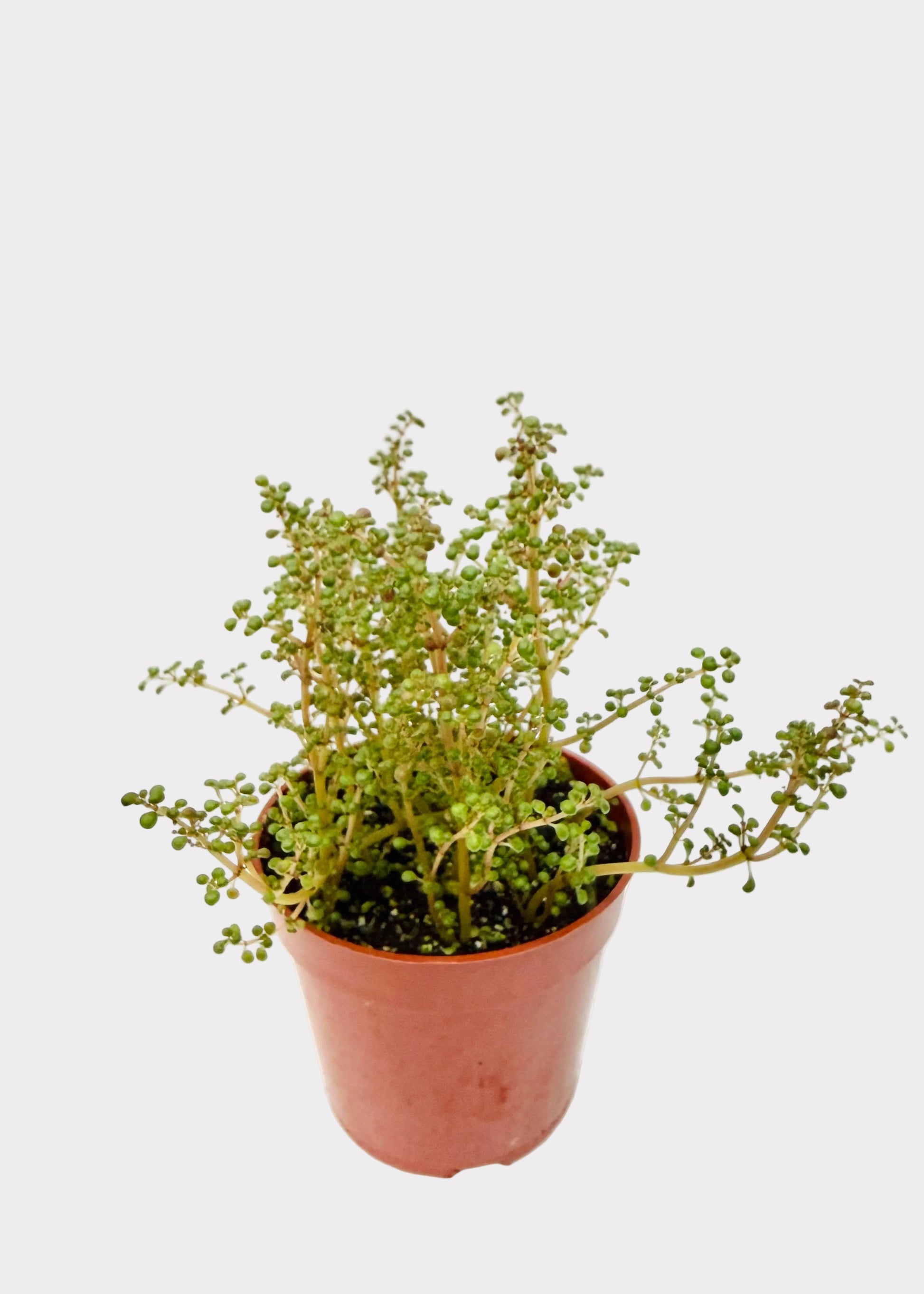 Pilea Globosa is a charming, fast growing houseplant loved for its tiny, round, bright green leaves and soft trailing habit. Its dense, cushion like foliage creates a lush, playful texture that instantly brightens any space. Easy to grow and full of personality, this plant is perfect for small pots, shelves, terrariums, or as a gentle spiller in mixed planters.