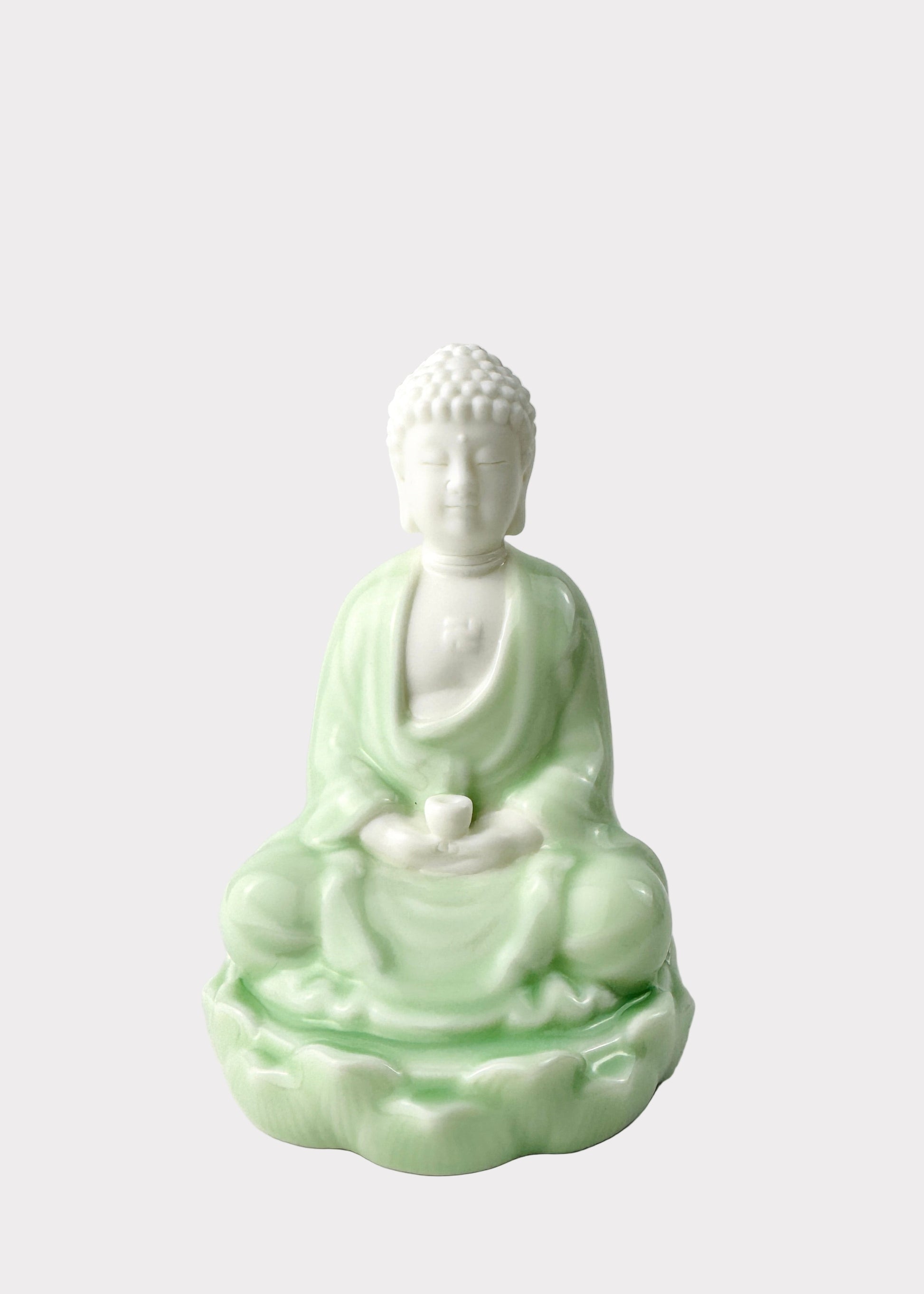 Porcelain Shakyamuni Buddha Statue – Celadon Green