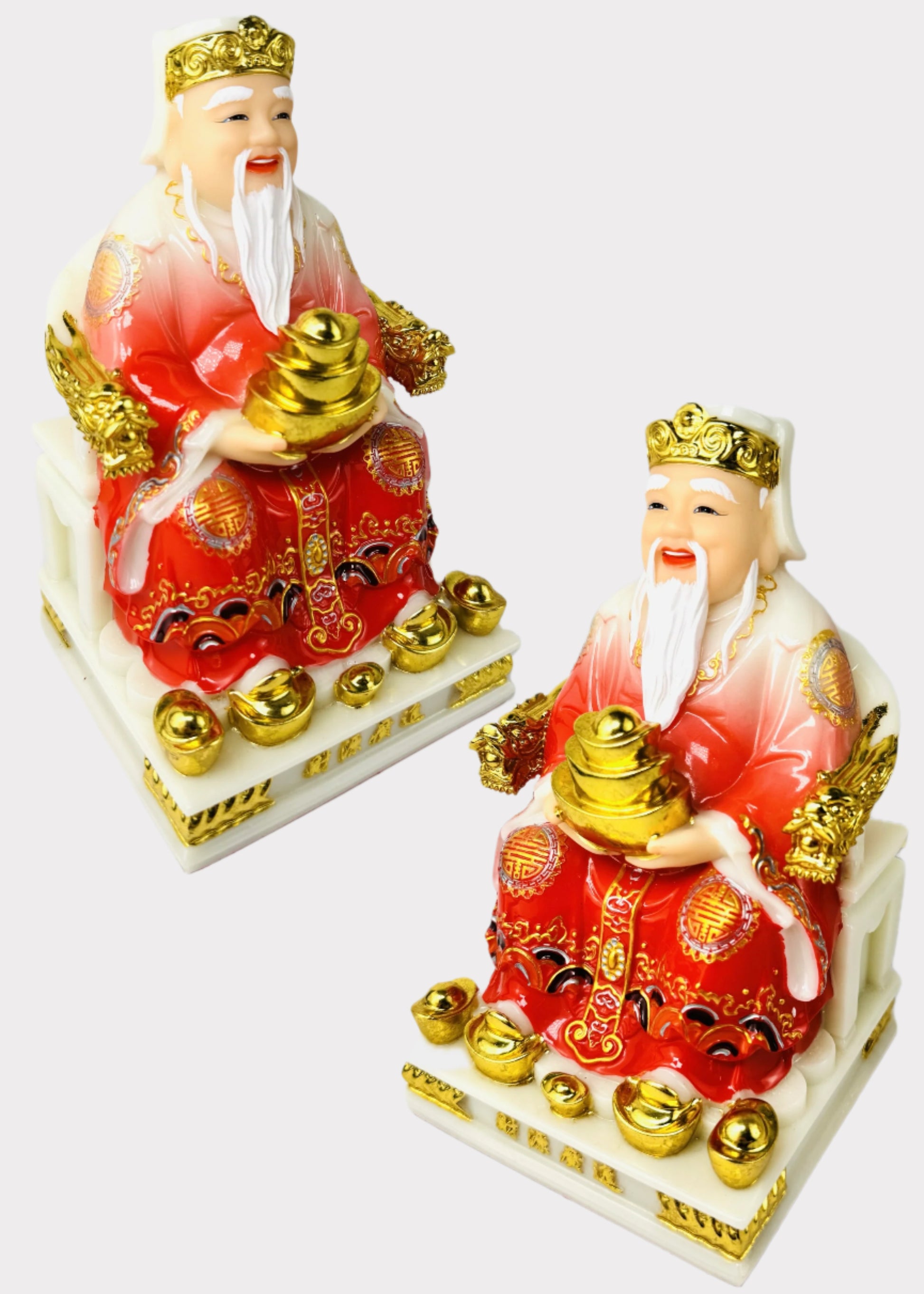 Exquisite Ông Địa & Thần Tài Stone Powder Statues – Symbols of Wealth & Prosperity