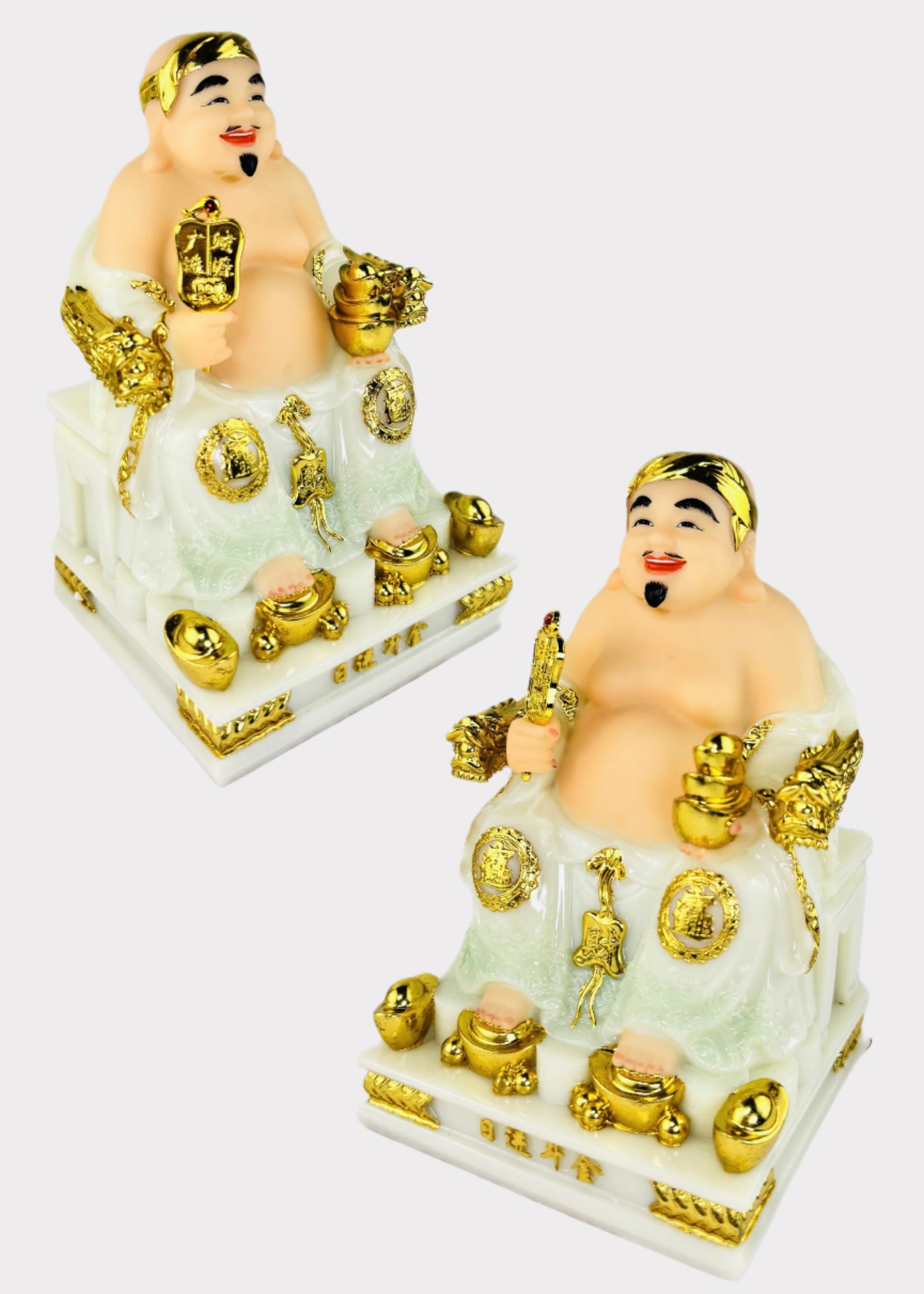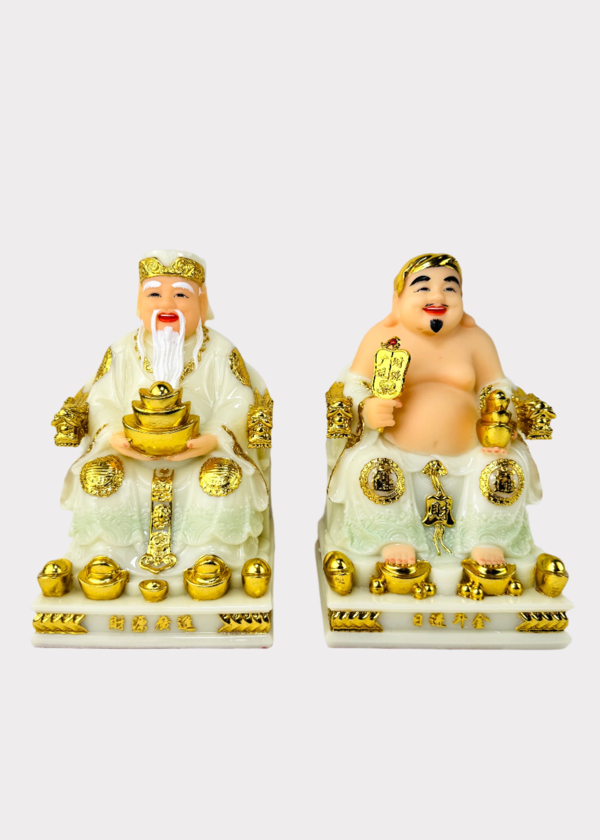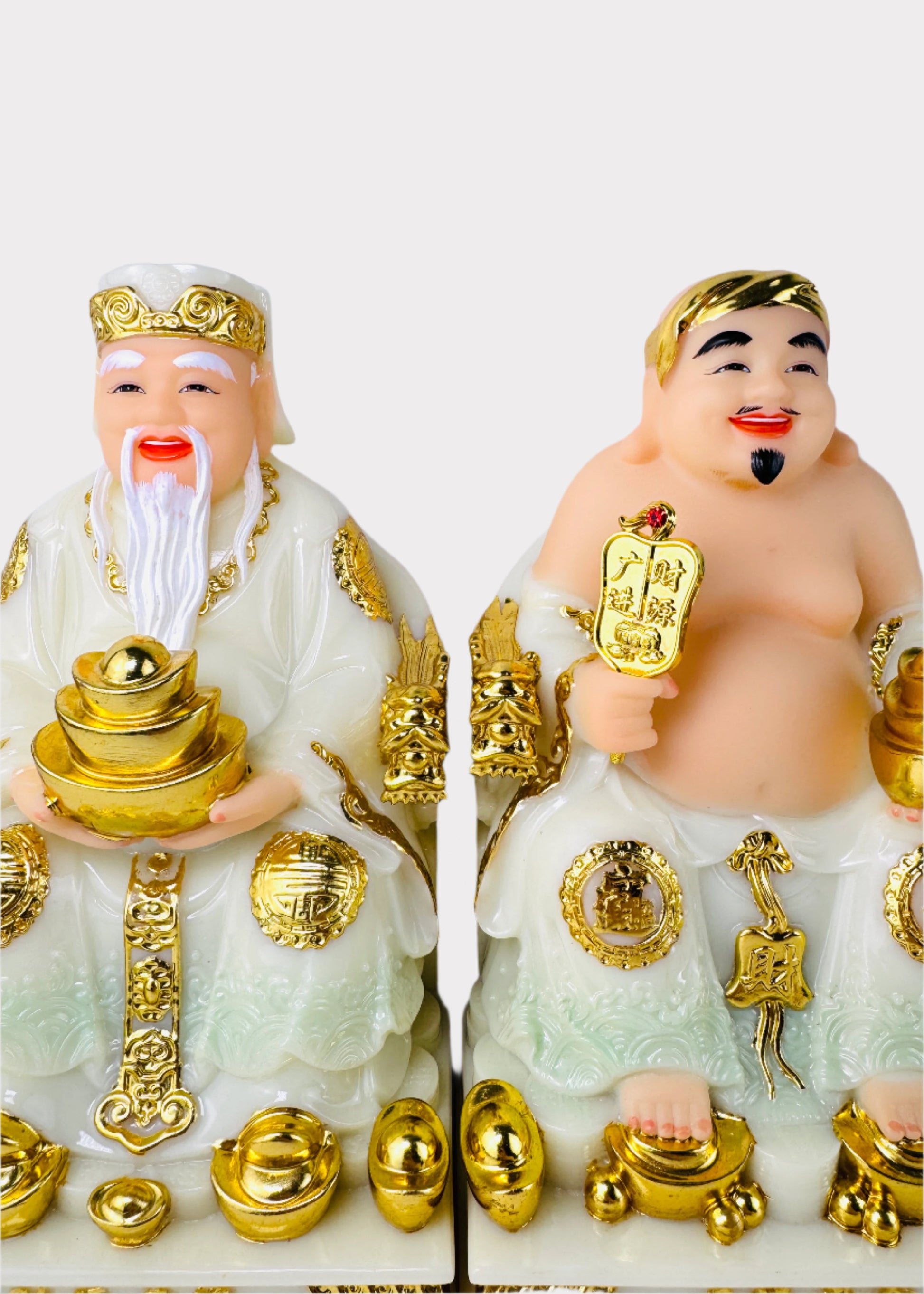 Exquisite Ông Địa & Thần Tài Stone Powder Statues – Symbols of Wealth & Prosperity