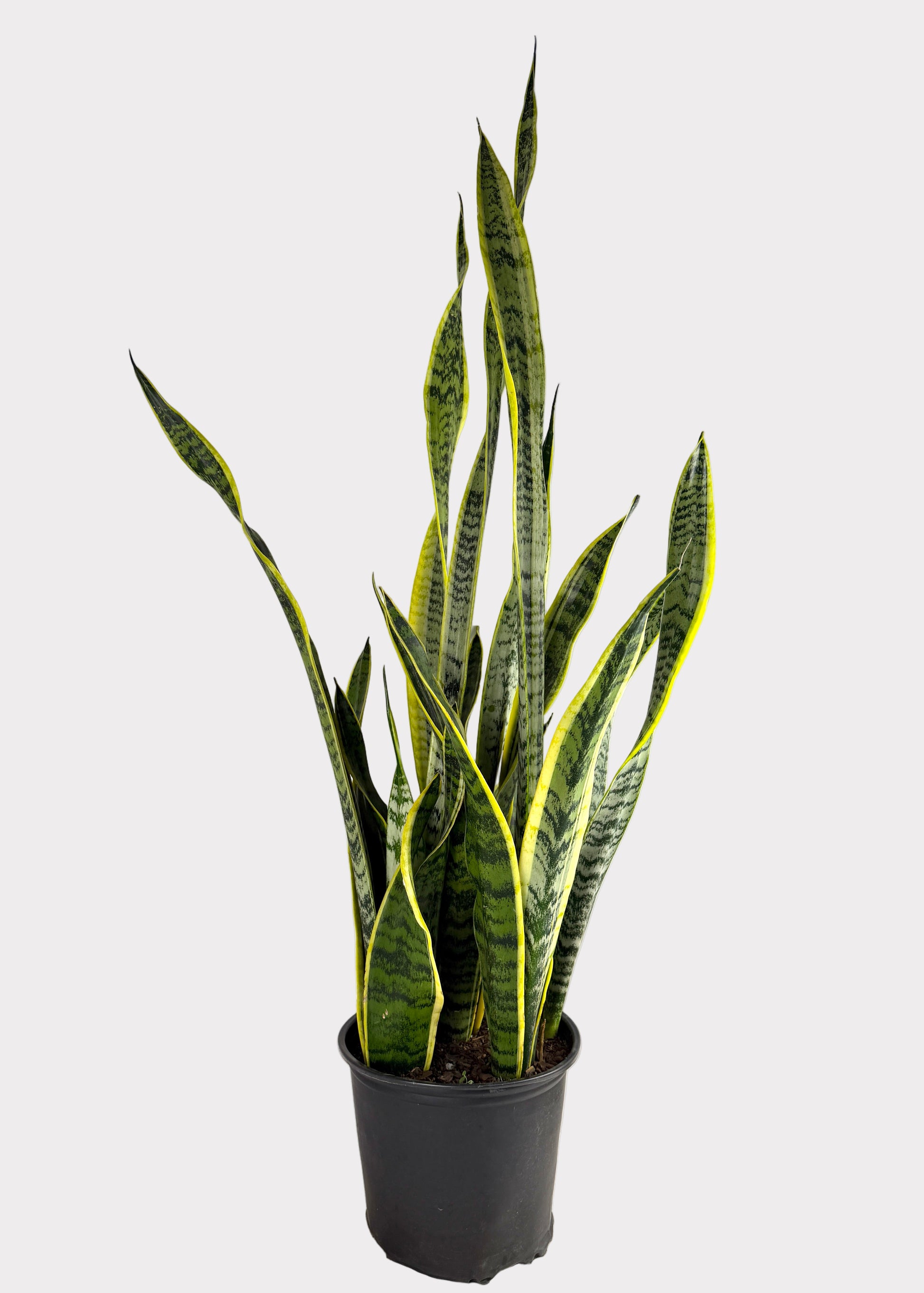 Sansevieria ‘Laurentii’ is a beloved snake plant variety recognized by its tall, sword-like leaves with striking green centers bordered by golden-yellow margins. Revered for its durability, air-purifying abilities, and sculptural presence, it brings bold structure and grounding energy to any space. Its minimalist appeal makes it ideal for homes, offices, and bedrooms.