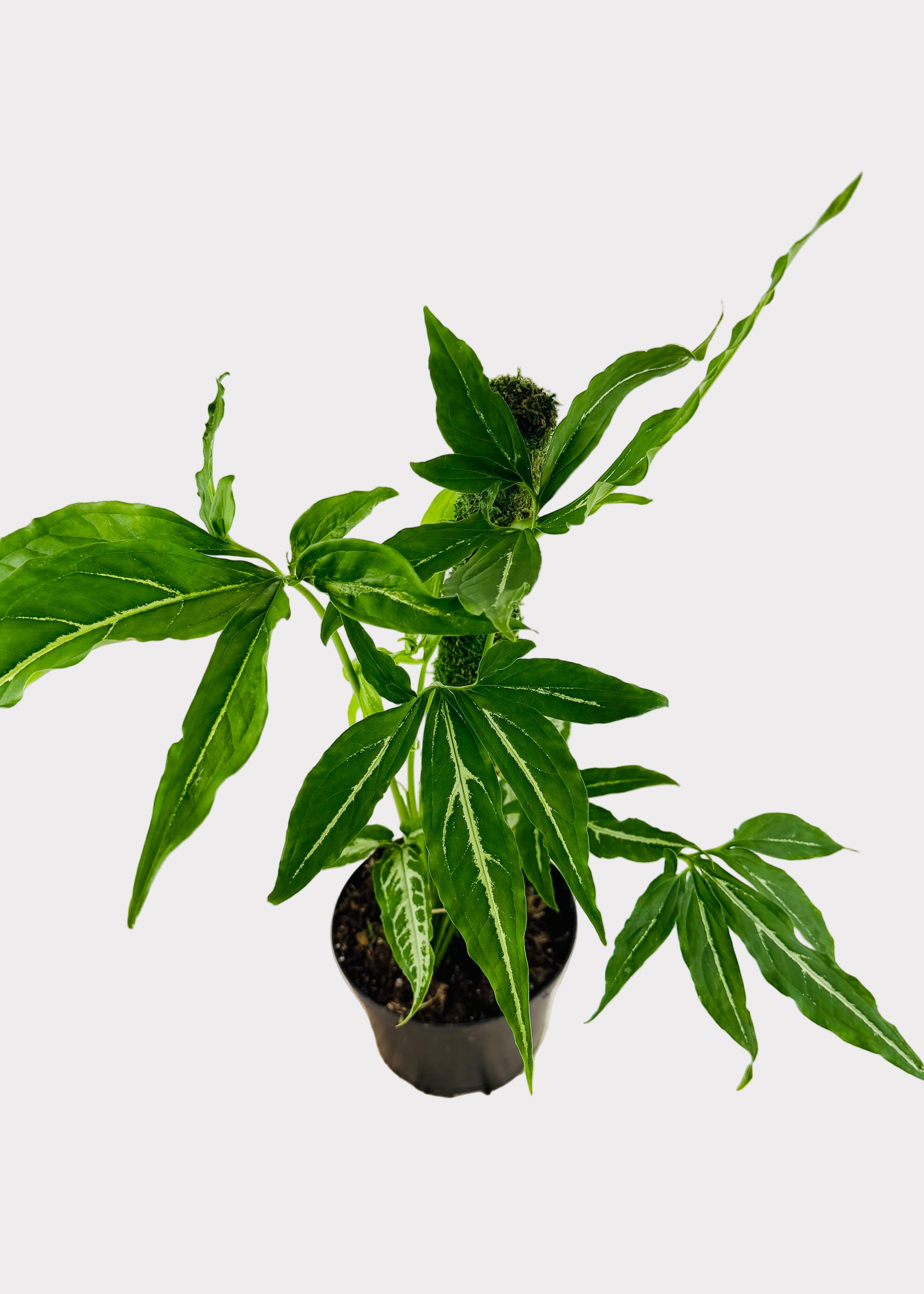 Syngonium ‘Little Star’ is a striking, narrow leaf arrowhead plant known for its deep green edges and speckled light green centers. Its elongated, lance shaped foliage gives it a graceful, airy look, while the fine star like speckles create a unique textured pattern across every leaf. Compact, fast growing, and easy to care for, Little Star adds an elegant touch of tropical greenery to shelves, desks, and plant clusters.