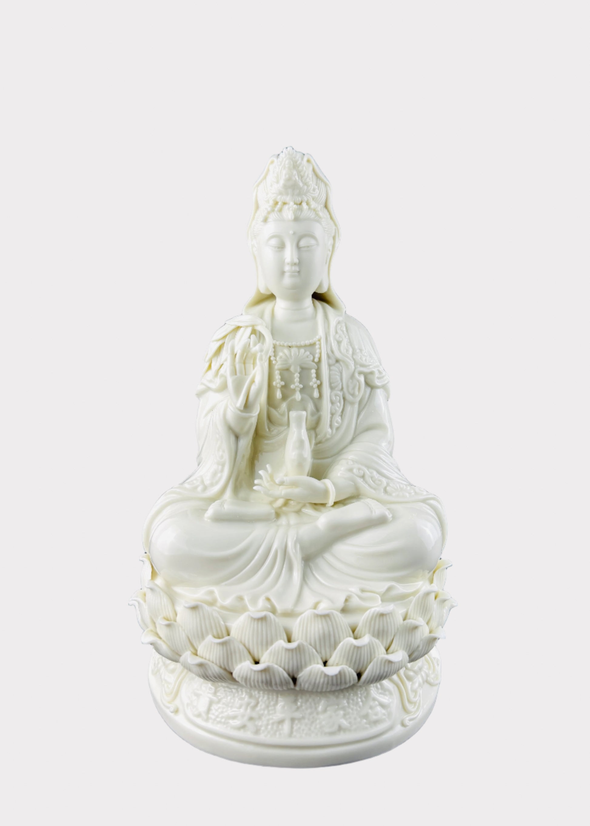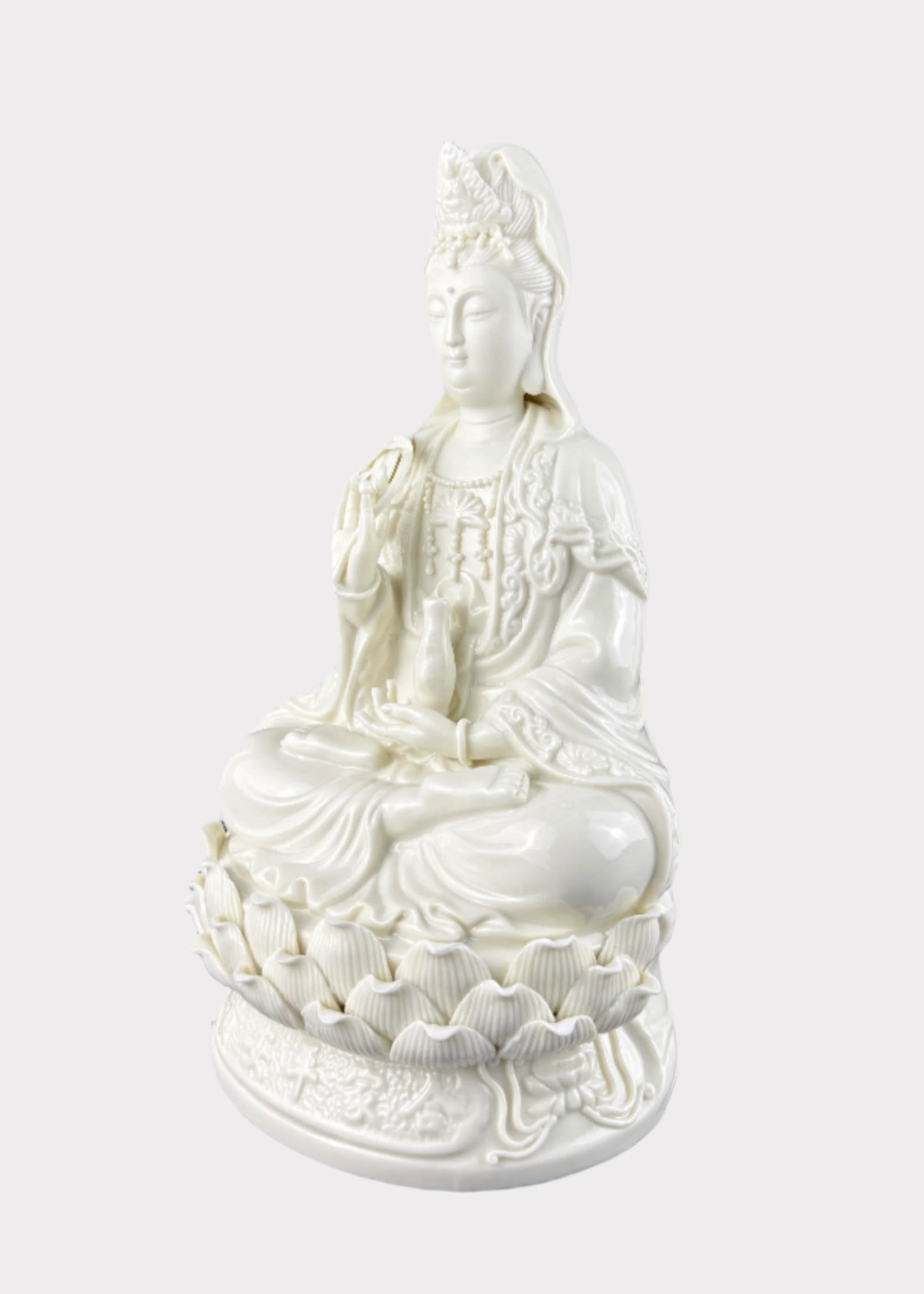 White Ceramic Guan Yin Statue – Serene Compassion & Blessings