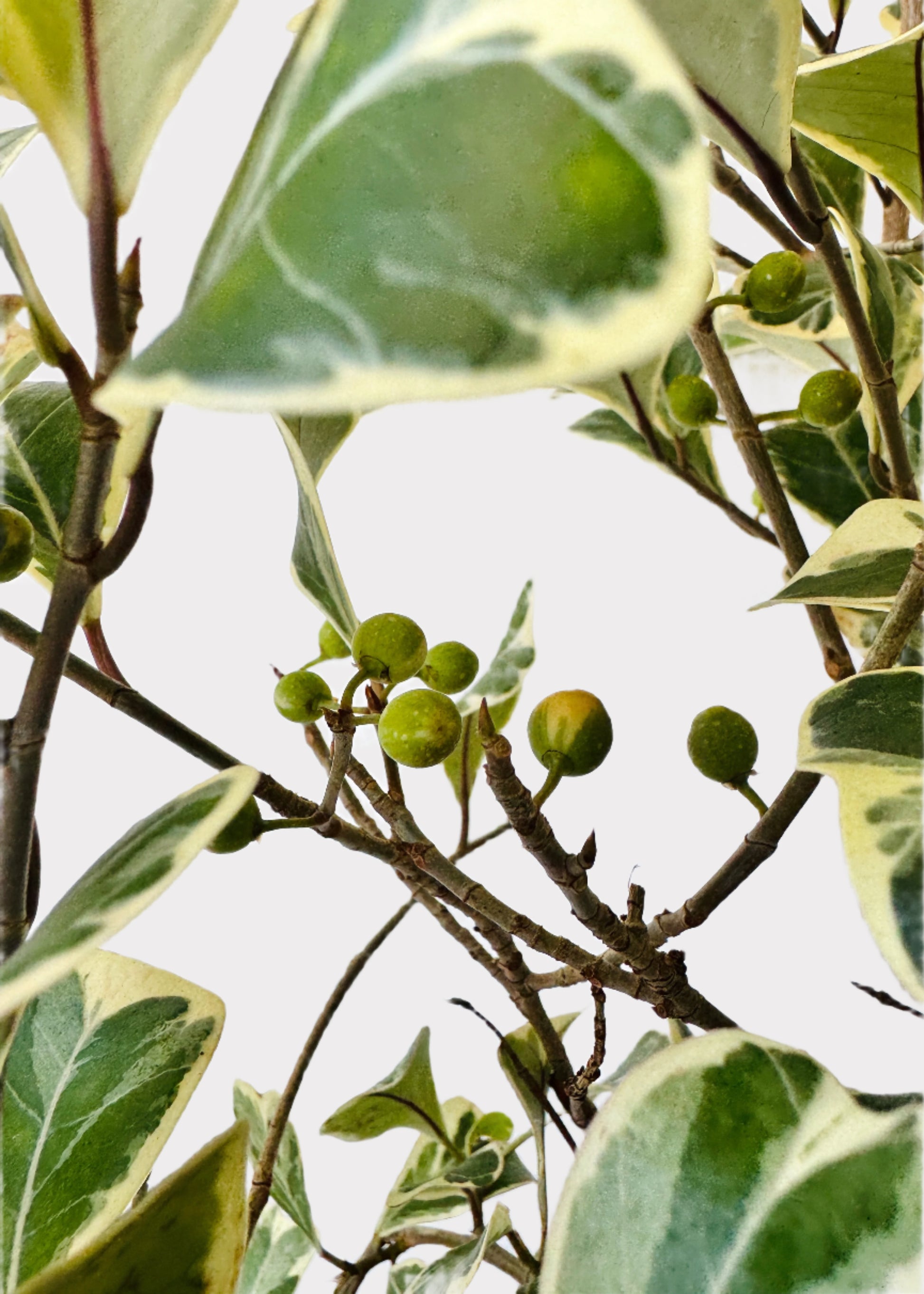 The Ficus Triangularis Variegated is a sophisticated foliage plant with thick, triangular leaves edged in creamy white. Its crisp geometric pattern and upright shape add structure and elegance to any indoor space. Native to Africa, this ficus is more tolerant and compact than its relatives, making it a modern choice for design-conscious plant lovers.