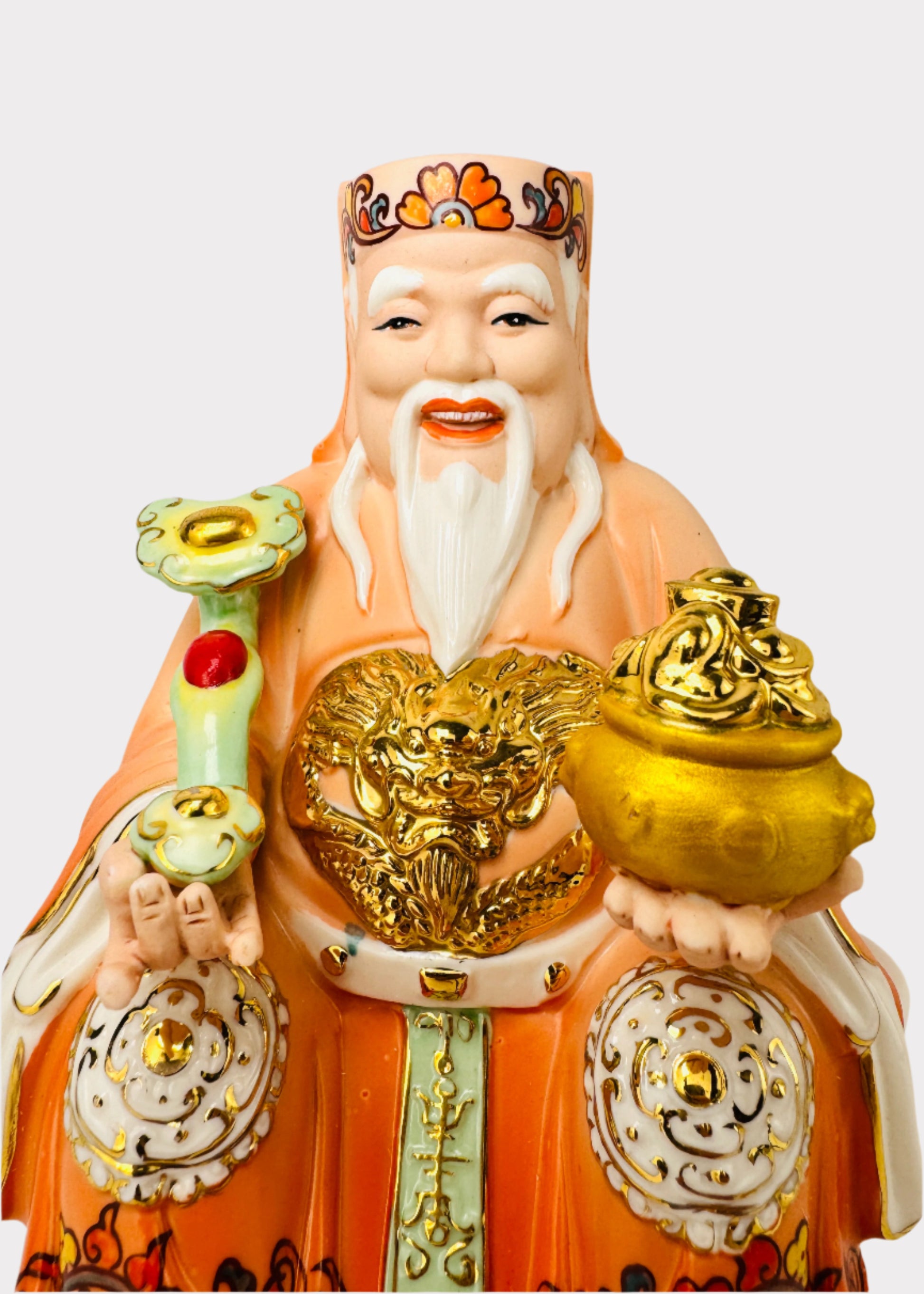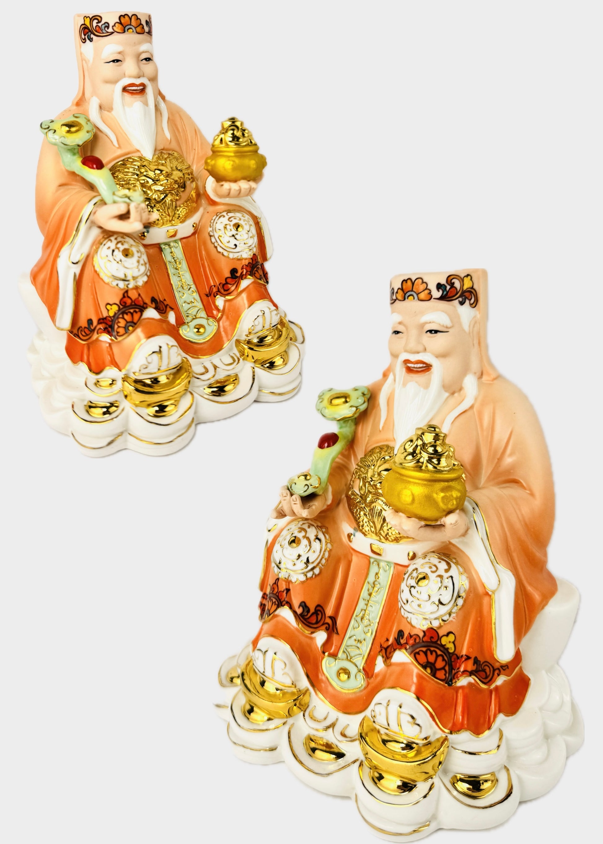 Porcelain Ông Địa & Thần Tài Statue Set – Hand-Painted with Gold Detailing